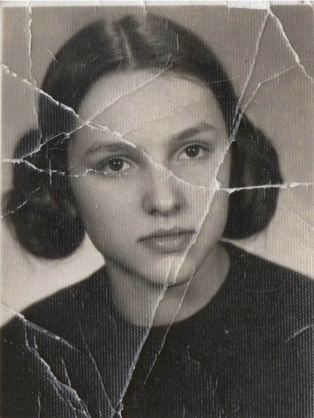 STRICT ARCHIVAL PHOTO RESTORATION (NO GENERATION). Task: Restore the provided photograph by repairing physical damage only, while preserving 100% of the original visual content. HARD CONSTRAINTS (ABSOLUTE): - IDENTITY LOCK: All people, faces, anatomy, pose, expressions, and clothing must remain EXACTLY identical to the input. Any change to a person = critical failure. - NO GENERATION: Do NOT generate, reconstruct, or imagine any missing parts. Only repair existing pixels. - NO STRUCTURAL CHANGES: Do not alter composition, framing, perspective, proportions, or aspect ratio. - NO NEW ELEMENTS: Do not add people, objects, limbs, fingers, background details, or textures. - NO FACE MODIFICATION: Do not beautify faces, enhance facial symmetry, sharpen eyes artificially, whiten teeth, or modify identity in any way. - HANDS & LIMBS: If a hand or limb is damaged or unclear, keep it as-is. Do NOT guess or reconstruct fingers. - COUNT LOCK: Preserve the exact number of people visible in the source. Do NOT remove anyone, even if they are partially out of frame, faded, or near the edge. RESTORATION RULES: - Remove dust, scratches, stains, mold, fungus, and physical damage ONLY where it is clearly damage. - Preserve original grain, texture, and natural imperfections of the analog medium. - Do NOT oversharpen. Do NOT smooth skin. Do NOT apply HDR or modern tone-mapping. - Keep tonal structure natural and historically consistent. FRAMING: - Output must match the original aspect ratio exactly. - If external background (table, hands, fabric, sofa, wood, frame) is visible around the photo, crop strictly to the photo edges. Do NOT extend the surrounding surface. WHEN UNCERTAIN: do nothing instead of guessing. FAIL CONDITION: If identity, anatomy, count of subjects, or composition changes — output is invalid. COLORIZATION (this is a black-and-white photo): - Apply subtle, historically plausible colorization using ORWO Color NC / SVEMA 130 palette. - Moderate saturation, slightly cool midtones, natural warm-neutral skin tones. - No modern color grading. No oversaturation. No HDR effect.