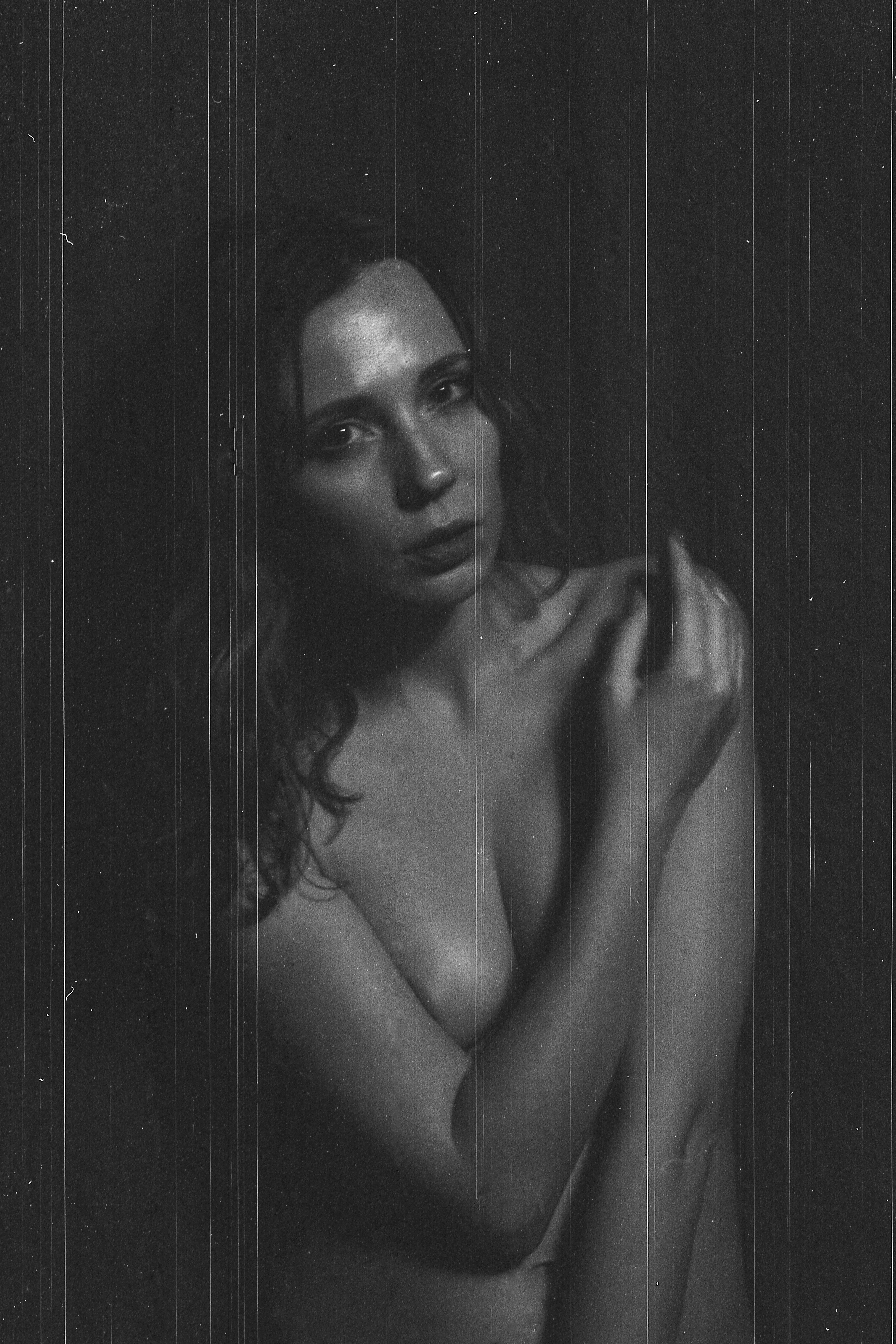Apply uniform technical enhancement to this scanned image — treat every pixel region identically regardless of content. DO NOT use face detection, face restoration, or face-specific enhancement algorithms. Faces are NOT special regions — treat them exactly like walls, sky, furniture, or any background element. The enhancement quality must be identical across faces, background, clothing, and all other areas. Sharpen, denoise, and recover full detail in the dark, textured backdrop. Remove all heavy film grain and digital noise, rendering the background as a smooth, high-fidelity gradient of shadows. This area must be as crisp as any face. In the foreground, sharpen and resolve the fine details of the woman's hands and arms. Enhance the micro-texture of the skin, knuckles, and fingernails to a modern, high-resolution photographic standard. Recover lost shadow detail in the hair over the shoulders. Sharpen and define every individual strand of hair, ensuring the curls and flyaways are rendered with high-frequency detail. The definition of the hair must transition smoothly into the background without haloing or artifacts. Repair the edges and corners of the frame by removing white dust motes, fiber debris, and edge wear. Ensure the perimeter of the image is as sharp and noise-free as the center. Remove the heavy vertical white scratch lines that run the full height of the image. Eliminate all white chemical spots, dust specks, and vertical negative scratches. Inpaint these areas by sampling from the immediate surrounding textures to create a seamless, liquid-smooth result across the entire canvas. For faces: apply the EXACT SAME sharpening and denoising as the background and clothing — no more. DO NOT use face restoration, face upscaling, or face enhancement. Faces are just another region of the image — treat them as you would a textured wall. Do NOT alter facial structure, expression, identity, or proportions. Remove any damage by inpainting from context only. Preserve skin texture — pores, fine lines, natural imperfections. Output must have the EXACT same aspect ratio as the input. Do not expand, crop, or add borders. Do not expand the canvas. Do not fill in areas outside the original photo. Maintain the original black and white monochromatic tonal scale. Every area must be equally sharp and clean. Blurry background or unsharp clothing = critical failure. No area is more important than any other. ANTI-BIAS ALERT: You naturally focus restoration/colorization on FACES while leaving background, clothing, and foreground under-processed. This is the #1 quality failure. Consciously counteract this. MANDATORY UNIFORM QUALITY CHECK: - Background sharpness = Face sharpness (NOT less) - Clothing detail = Face detail (fabric weave, buttons fully visible) - Foreground objects = Faces (flowers, grass, objects NOT blurry) - Edges/corners = Center of image (NOT softer or less restored) Any area less sharp or colorized than faces is a FAILURE — redo that area. ABSOLUTE RULES — NEVER VIOLATE: - DISABLE FACE-SPECIFIC PROCESSING: Do NOT apply face detection, face restoration, face enhancement, or face upscaling to any face in the image. Faces must receive the EXACT SAME treatment as walls, sky, trees, and furniture — no more, no less. Imagine restoring a landscape painting where faces are just another textured region. - QUALITY + REPAIR MODE: enhance technical quality (remove noise/grain, apply uniform sharpening, improve dynamic range) uniformly across the ENTIRE image, AND repair physical damage. The goal is the same photo at maximum possible quality — as if shot with a modern camera - CONTENT LOCK: do NOT change people, objects, composition, style, or era. Same scene, same identity — just technically better. Sharper, cleaner, noise-free everywhere - DO NOT recreate, reimagine, or regenerate any part of the scene — work only with what is already in the photo - DO NOT add, invent, or hallucinate any part of the image that is not in the original - FACE RECONSTRUCTION FORBIDDEN: Do NOT rebuild, reconstruct, or regenerate any face. Ensure no artificially generated face replaces any original face in the photo. Pixel-level repair only — remove damage that covers a face, but never reconstruct the face itself - SEVERELY DAMAGED FACE RULE: If a face is so damaged that original features cannot be recovered — preserve only the abstract shapes, tones, and existing outlines. DO NOT generate, imagine, or invent what the face might look like. It is better to show a blurry or partially damaged face than to show a different person's face. - WRONG IDENTITY = CRITICAL FAILURE: If the output shows a different person than the input, or a face that was generated/invented by AI, the result is completely unacceptable. A partially damaged original face is always better than a perfect AI-generated replacement face. - DO NOT change, replace, or alter any person's face, body, or identity. 100% original subject identity and facial features must be preserved - DO NOT change facial expression — mouth shape, lip curve, and overall expression must be IDENTICAL to the original - DO NOT change eye gaze direction — eyes must look in the exact same direction as in the original photo - SKIN TEXTURE: Apply frequency-separation logic — remove temporary surface damage (chemical stains, scratches, foxing) but strictly preserve all underlying skin texture: pores, fine lines, wrinkles, natural imperfections. Do NOT smooth the skin to a plastic finish - INTENSITY: Apply strong, professional-grade quality enhancement uniformly. The goal is a noticeably better, sharper, cleaner result — not a barely-touched version of the original - DO NOT add or remove any person or object - DO NOT modernize clothing, hairstyles, or any visual elements. Preserve the original era, style, and visual aesthetic of the photo - FILM GRAIN / NOISE = DEFECTS: Film grain, sensor noise, and age-related softness are technical defects to ELIMINATE