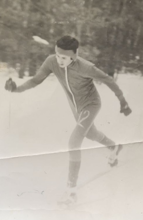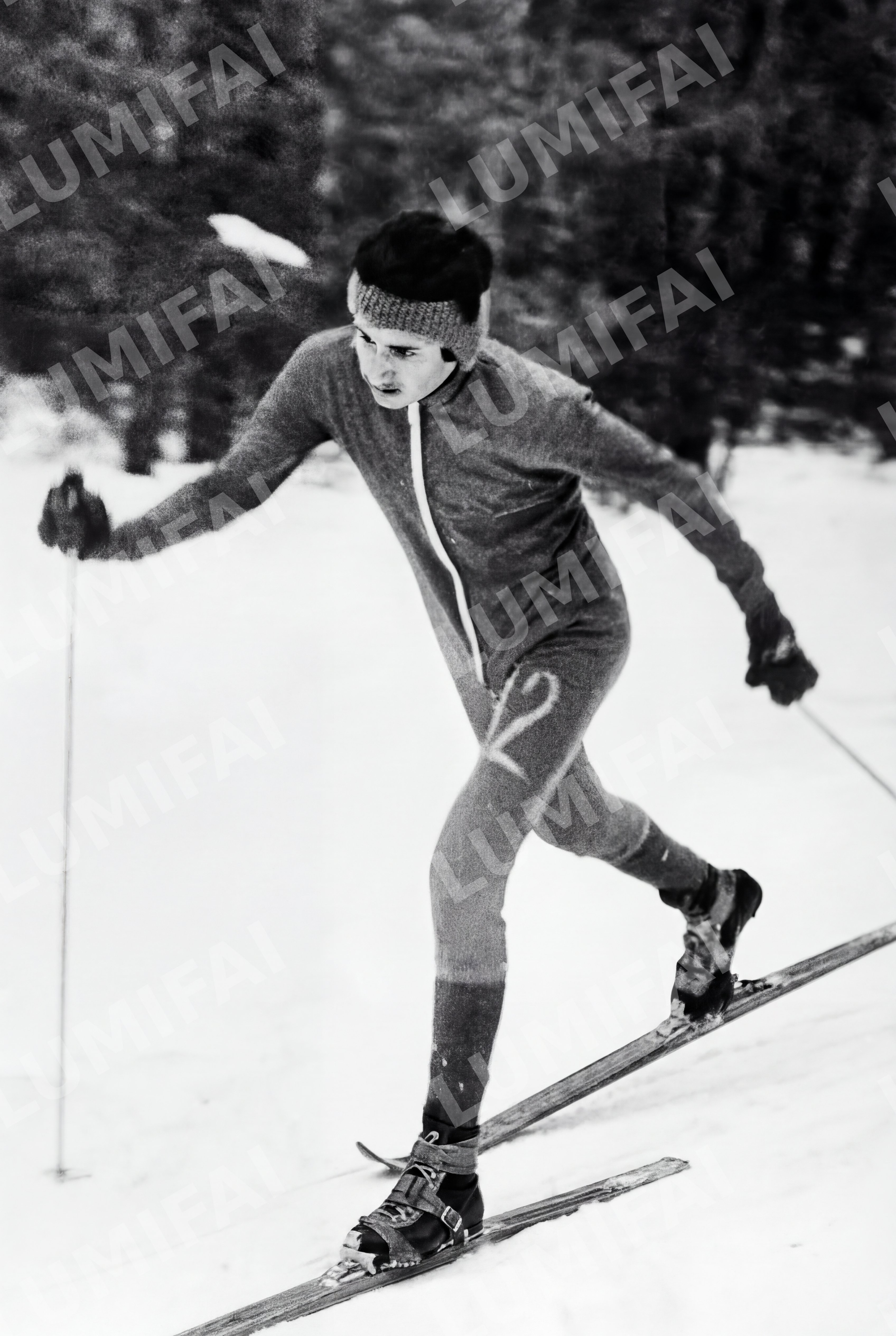 Промт для реставрации фото лыжника на фоне заснеженного пейзажа