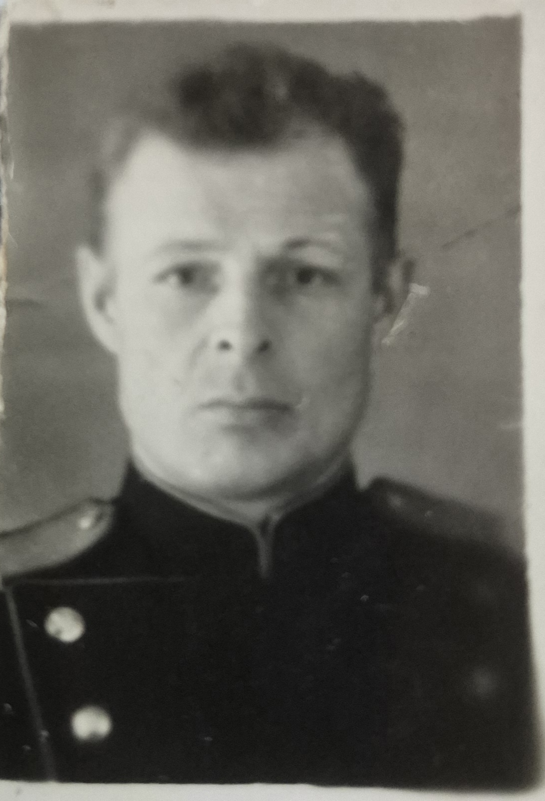 RESTORE AND ENHANCE this single-person black and white photograph from the mid-20th century. The subject is a man in military uniform centered in the frame. Remove visible physical damage including small scratches, a fold on the top left corner, and a faint stain on the left side. ENHANCE the quality by: - Sharpening the facial features, hair, and uniform details - Improving tonal contrast and dynamic range - Recovering lost shadow and highlight detail - Reducing film grain while maintaining a natural texture COLORIZE with the following details: - Skin tone: natural warm ivory/light tan - Military uniform: muted, historically accurate army green with gold buttons - Background: neutral and consistent with the period, using subdued tones Ensure all colors remain muted and desaturated like a real analog photograph from the era. Results should resemble a genuine color photograph from the mid-20th century, not a painting or illustration. ABSOLUTE RULES — NEVER VIOLATE: - DO NOT add, invent, or hallucinate any part of the image that is not in the original (do not extend cropped areas, do not fill missing parts with invented content) - DO NOT change the framing or composition — if the photo is cropped, keep it cropped exactly the same way - DO NOT add any new damage, folds, creases, tears, dark borders, vignettes, or artifacts - DO NOT colorize — if the photo is black and white, the output must be black and white - DO NOT change, replace, or alter any person's face, body, or identity - DO NOT add or remove any person or object - DO NOT modernize clothing, hairstyles, or any visual elements - ONLY fix what is already damaged — remove existing scratches, tears, stains, fading - Keep the exact same framing, crop, and aspect ratio as the original