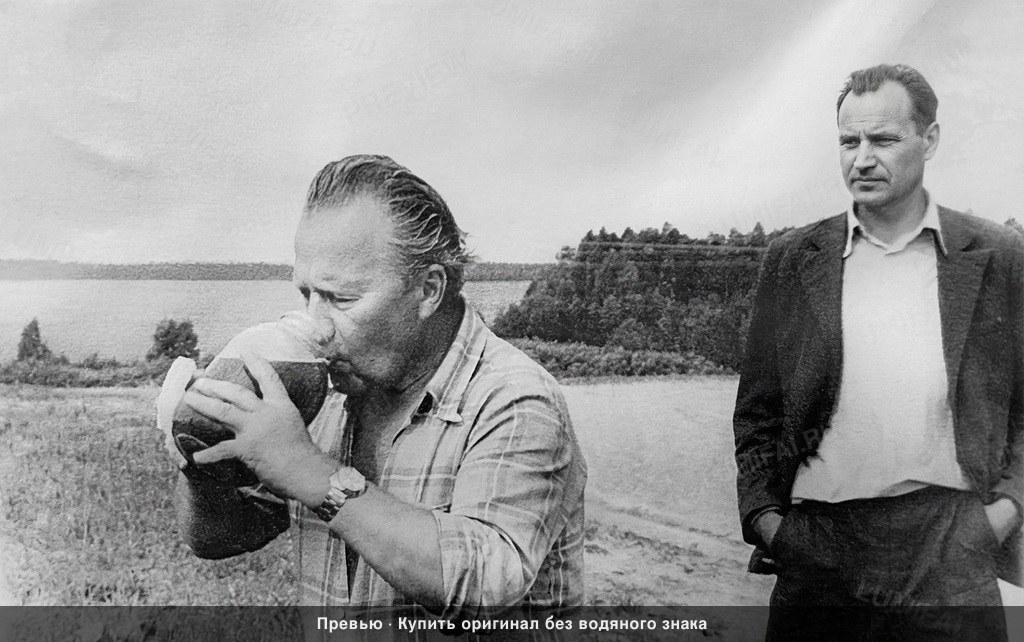 Perform a meticulous non-destructive restoration of this aged photograph. Preserve its archival character. Only fix pixels that are visibly damaged — leave all intact areas exactly as-is. First, restore the background landscape: remove the heavy vertical creases and light leaks in the upper right sky. Sharpen the distant tree line, the surface of the water, and the clouds with the same intensity as the subjects. Restore the grassy field in the mid-ground, removing all dust spots and paper texture while maintaining the crispness of the blades of grass and dirt paths. Second, restore the foreground objects: recover the fine metallic detail and texture of the wristwatch on the man's left arm. Sharpen the jug/vessel he is drinking from, ensuring the reflections and surface texture are rendered with high clarity. Third, clothing textures: restore the plaid pattern of the shirt on the left with full micro-detail, ensuring every line and fabric fold is sharp. Enhance the heavy fabric weave of the suit jacket and trousers on the man to the right, maintaining the distinct contrast between the shirt and the jacket. Fourth, edges and corners: repair the significant paper folds and white creases in the top left and top right corners. Remove all silvering, staining, and chemical fading from the outer borders to match the center's tonal range. Fifth, for faces: pixel-level damage removal ONLY. Do NOT rebuild, reconstruct, or regenerate any face. Remove scratches and stains that cover the face, but preserve the exact underlying facial structure, expression, skin texture, and identity. Ensure no artificially generated face replaces any original. Preserve pores, fine lines, and natural skin imperfections — do NOT smooth to a plastic finish. Apply IDENTICAL sharpness and restoration quality to background, foreground, clothing, AND faces — no hierarchy. Background trees and sky must be as sharp and detailed as any face in the image. WARNING: You have a natural bias toward faces. Consciously COMPENSATE — over-process background and clothing to balance. CRITICAL: Process all areas with equal quality. Compensate for natural face-bias by applying extra restoration effort to background, clothing, and foreground objects. ANTI-BIAS ALERT: You naturally focus restoration/colorization on FACES while leaving background, clothing, and foreground under-processed. This is the #1 quality failure. Consciously counteract this. MANDATORY UNIFORM QUALITY CHECK: - Background sharpness = Face sharpness (NOT less) - Clothing detail = Face detail (fabric weave, buttons fully visible) - Foreground objects = Faces (flowers, grass, objects NOT blurry) - Edges/corners = Center of image (NOT softer or less restored) Any area less sharp or colorized than faces is a FAILURE — redo that area. ABSOLUTE RULES — NEVER VIOLATE: - YOU ARE PERFORMING NON-DESTRUCTIVE RESTORATION — only fix pixels that are visibly damaged. Leave all intact areas exactly as-is. This is pixel-level repair, NOT image generation. - DO NOT recreate, reimagine, or regenerate any part of the scene — work only with what is already in the photo - DO NOT add, invent, or hallucinate any part of the image that is not in the original - FACE RECONSTRUCTION FORBIDDEN: Do NOT rebuild, reconstruct, or regenerate any face. Ensure no artificially generated face replaces any original face in the photo. Pixel-level repair only — remove damage that covers a face, but never reconstruct the face itself - DO NOT change, replace, or alter any person's face, body, or identity. 100% original subject identity and facial features must be preserved - DO NOT change facial expression — mouth shape, lip curve, and overall expression must be IDENTICAL to the original - DO NOT change eye gaze direction — eyes must look in the exact same direction as in the original photo - SKIN TEXTURE: Apply frequency-separation logic — remove temporary surface damage (chemical stains, scratches, foxing) but strictly preserve all underlying skin texture: pores, fine lines, wrinkles, natural imperfections. Do NOT smooth the skin to a plastic finish - INTENSITY: Apply subtle, targeted corrections. Do NOT apply maximum processing to any area — natural and authentic result is the goal, not a "perfect" artificial image - DO NOT add or remove any person or object - DO NOT modernize clothing, hairstyles, or any visual elements. Preserve the authentic archival character of the photo - Keep the exact same framing, crop, and aspect ratio as the original - CANVAS SIZE: Output must have EXACTLY the same canvas dimensions as the input. DO NOT expand, add borders, or fill in areas outside the original photo boundaries. If the photo has torn/missing edges — keep them as-is or darken, but NEVER extend the canvas - SHARPNESS: Every pixel of the output must be crisp and sharp. NO softness, NO blur, NO smoothing anywhere. Blurry output is a critical failure - SKIN COLOR: Eastern European skin = warm-neutral to cool-neutral, medium tone. NEVER red or orange. NEVER ghostly pale or washed-out. NEVER airbrushed or plastic. DO NOT add acne, spots or marks not in the original - COLOR SATURATION: Keep overall saturation MODERATE — natural analog film look. NOT vivid digital. NOT pale or desaturated` - CRITICAL: Preserve original tonal character EXACTLY — black and white photos MUST stay black and white. Sepia photos MUST stay sepia. DO NOT add ANY color whatsoever. - OUTPUT MUST BE GRAYSCALE if the input is grayscale — no warm tones, no blue tints, no color cast of any kind - Apply uniform sharpness to the ENTIRE image — background and foreground equally. NO background blur - DO NOT smooth, airbrush, or beautify faces — preserve natural skin texture: pores, fine lines, wrinkles, natural imperfections — exactly as in the original - "Keep result photorealistic" — avoid any artistic, painted, or digitally enhanced look