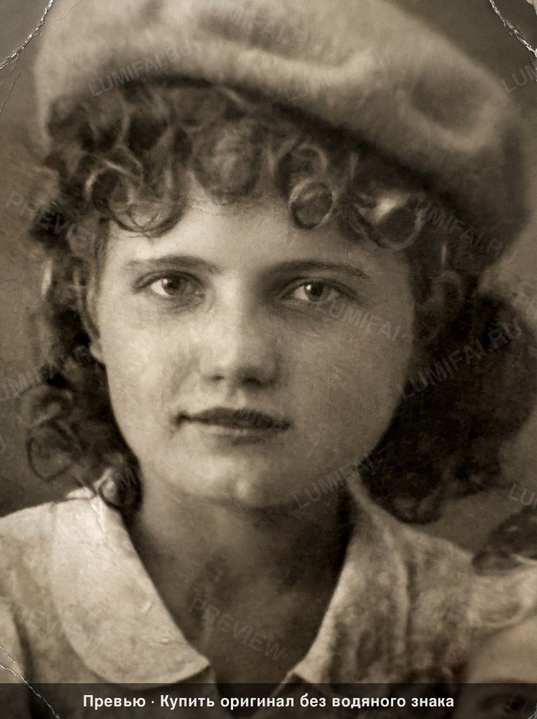 Промт для реставрации винтажного портрета женщины в берете