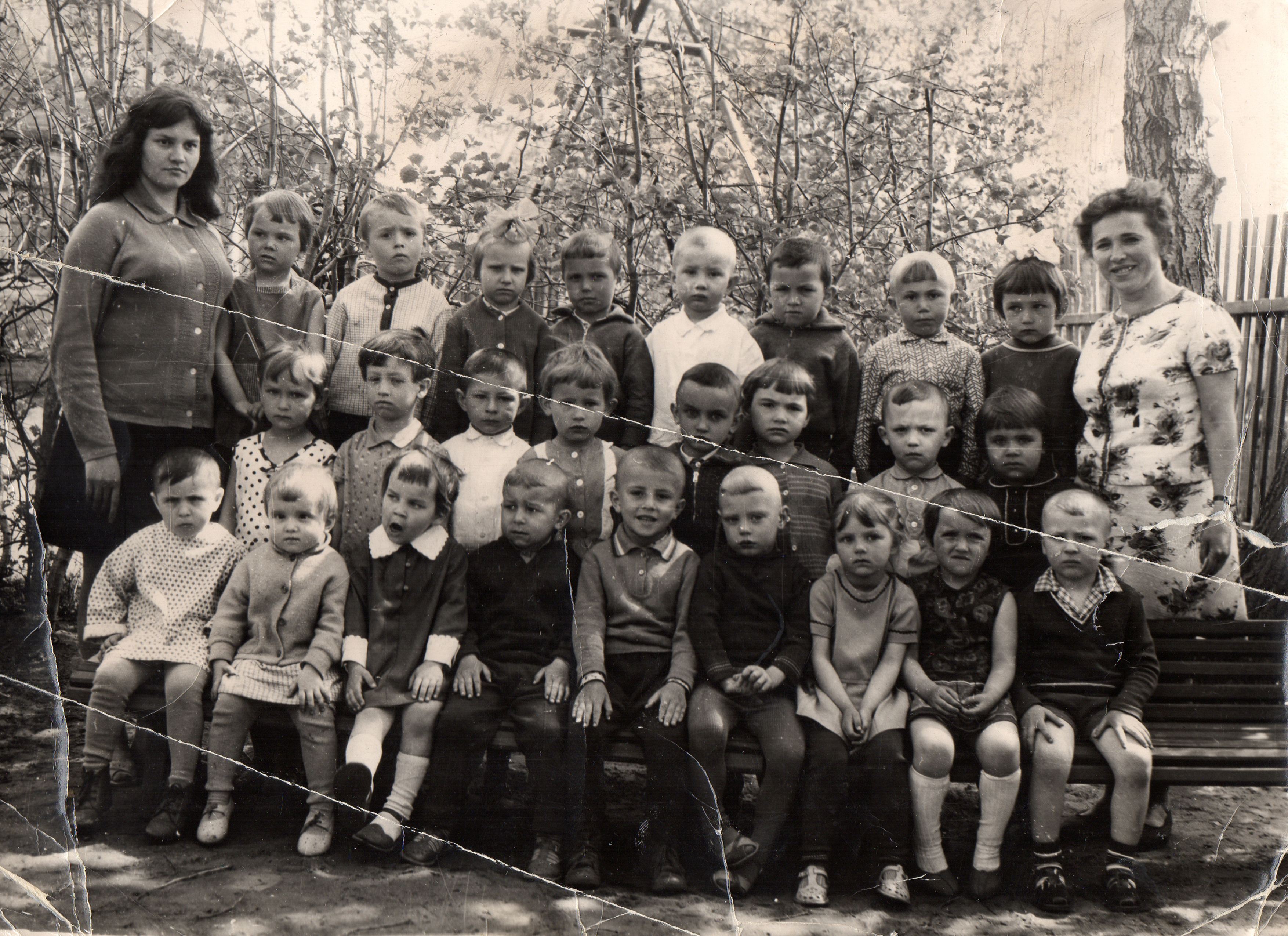 Apply uniform technical enhancement to this scanned image — treat every pixel region identically regardless of content. DO NOT use face detection, face restoration, or face-specific enhancement algorithms. Faces are NOT special regions — treat them exactly like walls, sky, furniture, or any background element. The enhancement quality must be identical across faces, background, clothing, and all other areas. Sharpen, denoise, and recover full detail in the background garden environment, specifically the intricate branches, leaves, and dense foliage of the trees and bushes. Recover the rough texture of the vertical-slatted wooden fence and the thick tree trunk on the right. This area must be as crisp as any face. Focus on the wooden bench slats in the foreground, sharpening the grain and edges of the wood. Denoise and recover the texture of the dirt ground below the children's feet. Achieve maximum clarity in the hair bows, headbands, and hair strands of every individual. For clothing: sharpen the complex patterns, including the polka dots on the small girl's dress, the floral print on the teacher's dress on the right, the knit pilling on sweaters, the button-down shirts, and the striped collars. Each fabric weave must be distinct and high-resolution. Edges and corners: Repair all torn edges and bent corners. Sharpen the periphery of the frame to match the center quality perfectly. Physical damage list: Remove the prominent horizontal white crack/scratch running through the middle of the group, which crosses several children's chests and faces. Remove the vertical crease on the left side crossing the woman's arm. Eliminate all white speckling, chemical spotting, and small surface scratches scattered throughout the upper foliage and the bottom foreground. For faces: apply the EXACT SAME sharpening and denoising as the background and clothing — no more. DO NOT use face restoration, face upscaling, or face enhancement. Faces are just another region of the image — treat them as you would a textured wall. Do NOT alter facial structure, expression, identity, or proportions. Remove any damage by inpainting from context only. Preserve skin texture — pores, fine lines, natural imperfections. Preserve the original black and white tonal character; do not introduce any color. Output must have the EXACT same aspect ratio as the input. Do not expand, crop, or add borders. Do not expand the canvas. Do not fill in areas outside the original photo. Every area must be equally sharp and clean. Blurry background or unsharp clothing = critical failure. No area is more important than any other. ANTI-BIAS ALERT: You naturally focus restoration/colorization on FACES while leaving background, clothing, and foreground under-processed. This is the #1 quality failure. Consciously counteract this. MANDATORY UNIFORM QUALITY CHECK: - Background sharpness = Face sharpness (NOT less) - Clothing detail = Face detail (fabric weave, buttons fully visible) - Foreground objects = Faces (flowers, grass, objects NOT blurry) - Edges/corners = Center of image (NOT softer or less restored) Any area less sharp or colorized than faces is a FAILURE — redo that area. ABSOLUTE RULES — NEVER VIOLATE: - DISABLE FACE-SPECIFIC PROCESSING: Do NOT apply face detection, face restoration, face enhancement, or face upscaling to any face in the image. Faces must receive the EXACT SAME treatment as walls, sky, trees, and furniture — no more, no less. Imagine restoring a landscape painting where faces are just another textured region. - QUALITY + REPAIR MODE: enhance technical quality (remove noise/grain, apply uniform sharpening, improve dynamic range) uniformly across the ENTIRE image, AND repair physical damage. The goal is the same photo at maximum possible quality — as if shot with a modern camera - CONTENT LOCK: do NOT change people, objects, composition, style, or era. Same scene, same identity — just technically better. Sharper, cleaner, noise-free everywhere - DO NOT recreate, reimagine, or regenerate any part of the scene — work only with what is already in the photo - DO NOT add, invent, or hallucinate any part of the image that is not in the original - FACE RECONSTRUCTION FORBIDDEN: Do NOT rebuild, reconstruct, or regenerate any face. Ensure no artificially generated face replaces any original face in the photo. Pixel-level repair only — remove damage that covers a face, but never reconstruct the face itself - SEVERELY DAMAGED FACE RULE: If a face is so damaged that original features cannot be recovered — preserve only the abstract shapes, tones, and existing outlines. DO NOT generate, imagine, or invent what the face might look like. It is better to show a blurry or partially damaged face than to show a different person's face. - WRONG IDENTITY = CRITICAL FAILURE: If the output shows a different person than the input, or a face that was generated/invented by AI, the result is completely unacceptable. A partially damaged original face is always better than a perfect AI-generated replacement face. - DO NOT change, replace, or alter any person's face, body, or identity. 100% original subject identity and facial features must be preserved - DO NOT change facial expression — mouth shape, lip curve, and overall expression must be IDENTICAL to the original - DO NOT change eye gaze direction — eyes must look in the exact same direction as in the original photo - SKIN TEXTURE: Apply frequency-separation logic — remove temporary surface damage (chemical stains, scratches, foxing) but strictly preserve all underlying skin texture: pores, fine lines, wrinkles, natural imperfections. Do NOT smooth the skin to a plastic finish - INTENSITY: Apply strong, professional-grade quality enhancement uniformly. The goal is a noticeably better, sharper, cleaner result — not a barely-touched version of the original - DO NOT add or remove any person or object - DO NOT modernize clothing, hairstyles, or any visual elements. Pres