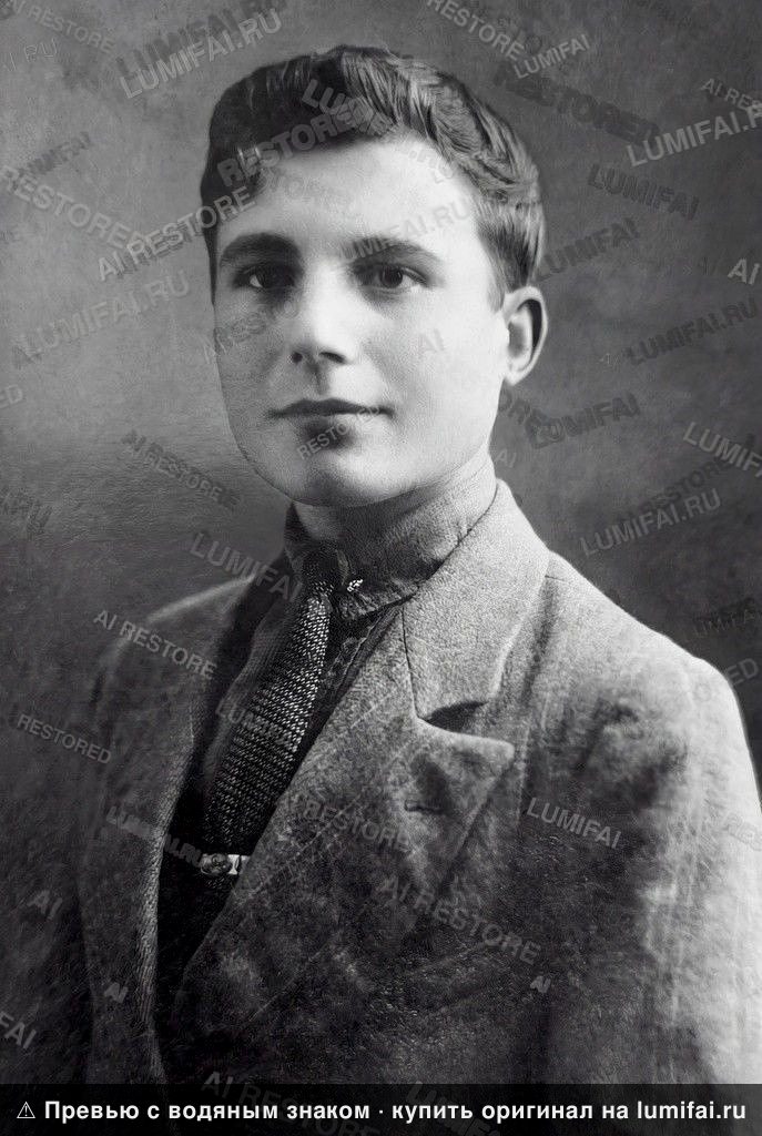 Промт для восстановления черно-белого мужского портрета в костюме