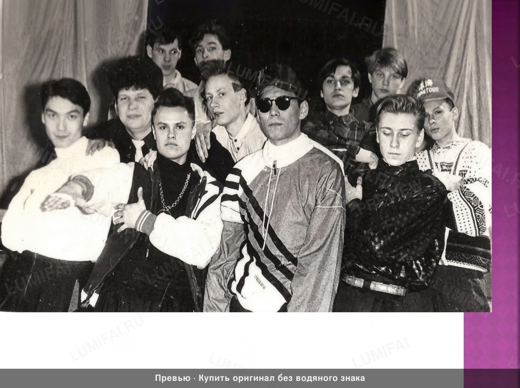 Промт для восстановления группового черно-белого фото 1980-х годов