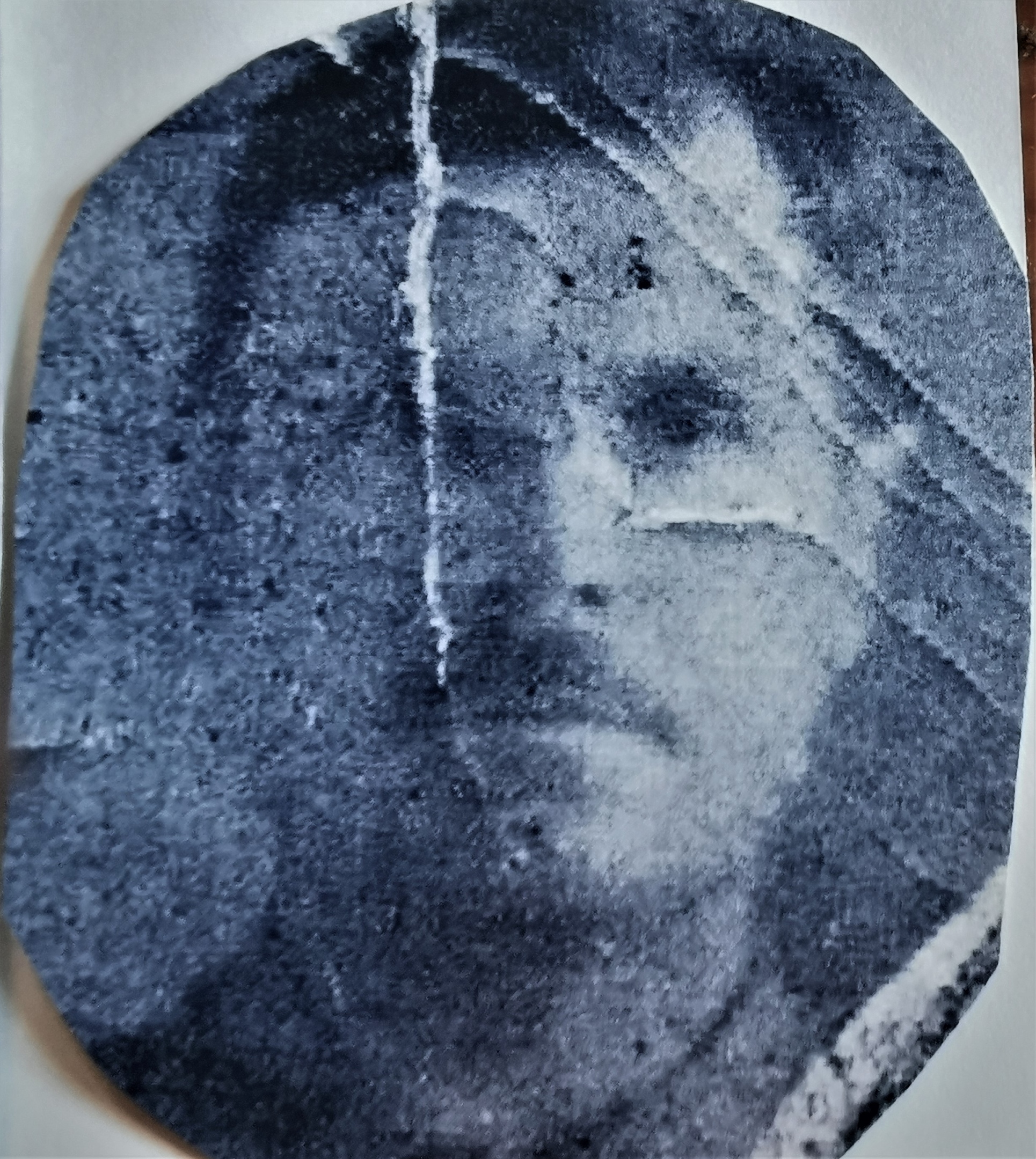 Restore, enhance, and colorize this photograph of a young man, likely an Eastern European from the Soviet 1970s-1980s. 1. RESTORE: Remove all severe physical damage including the large vertical tear running through the center of the face, the horizontal scrape across the cheek and eye, the heavy grain/noise, and the various chemical spots and mold stains. Reconstruct the missing facial features, specifically the right eye, nose bridge, and forehead, ensuring they match the existing lighting and perspective. 2. ENHANCE QUALITY: Drastically increase sharpness and detail. Recover micro-details like individual hair strands in the eyebrows and head, the texture of the mustache, and the fine iris details. Maintain natural skin grain; do not airbrush or soften. The image must look like a sharp, high-resolution scan of a real analog photo, with deep dynamic range and zero digital artifacts. 3. SKIN TNE & COLOR: Apply a photorealistic Eastern European skin tone—pale to fair with cool-neutral undertones. Strictly avoid any orange, red, terracotta, or warm golden tones. The skin must look alive with visible pores, subtle imperfections, and realistic highlights. The man is wearing a dark, high-collar garment characteristic of the era; colorize this in a muted Soviet-era palette like navy blue or charcoal grey, preserving the fabric weave and stitching detail. The background should be treated with equal restoration quality, appearing as a soft-focus interior or studio backdrop in neutral, muted tones. The final result must be uniformly restored across all edges and corners of the frame. Muted analog-film color palette — slightly desaturated, cool-neutral, realistic 1980s Soviet color photo look. ABSOLUTE RULES — NEVER VIOLATE: - DO NOT add, invent, or hallucinate any part of the image that is not in the original - DO NOT change the framing or composition — keep it exactly the same - DO NOT add any new damage, folds, creases, tears, dark borders, vignettes, or artifacts - DO NOT change, replace, or alter any person's face, body, or identity - DO NOT add or remove any person or object - DO NOT modernize clothing, hairstyles, or any visual elements - Keep the exact same framing, crop, and aspect ratio as the original - UNIFORM QUALITY: Process the ENTIRE image with equal attention — foreground flowers/textures, background elements, and edges must have the SAME sharpness and detail as faces. Do NOT leave any area blurry, simplified, or less detailed than another - SKIN COLOR: Eastern European skin = pale/medium, cool-neutral tone. NEVER red, orange, or overly warm. NEVER airbrushed or plastic - COLOR SATURATION: Keep overall saturation LOW TO MODERATE — muted analog film look, NOT vivid digital colors` - SKIN TONES: natural, warm, lifelike — NOT red, NOT orange, NOT pale/washed-out, NOT plastic/airbrushed - DO NOT smooth, airbrush, or beautify faces — preserve ALL natural skin texture (pores, subtle imperfections) - SATURATION: moderate and natural — like a real color photograph. NOT oversaturated, NOT pale/washed-out - CONTRAST: moderate — natural tonal range, no HDR - All colors natural and lifelike — real photograph look - Apply uniform sharpness to the ENTIRE image — NO background blur