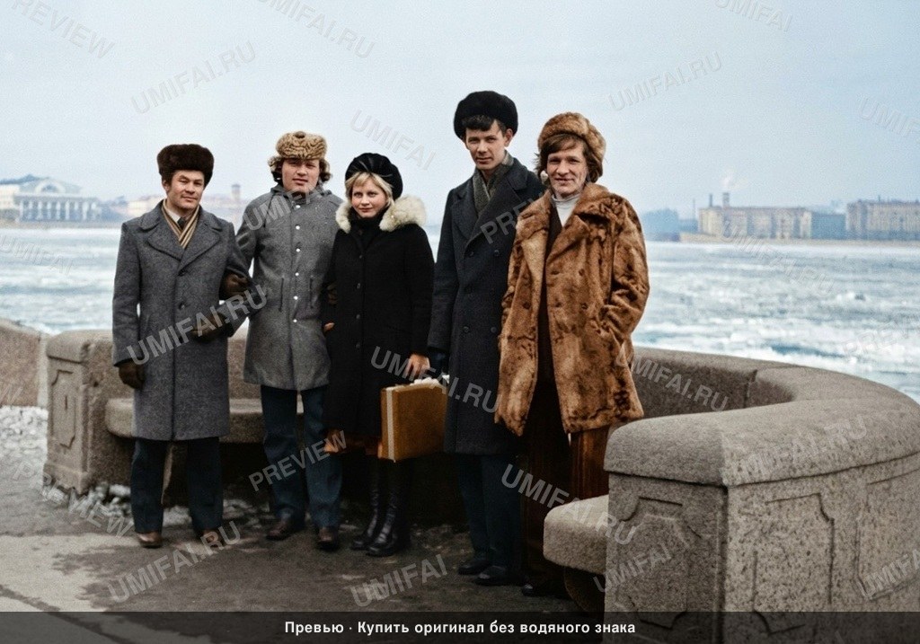 Perform meticulous non-destructive restoration and colorization of this aged photograph. Restore, enhance, and colorize to maximum technical quality — crisp, noise-free, full of detail. Add historically accurate colors. Output MUST have the EXACT same aspect ratio as the input. Colorize the EXISTING photograph using ORWO Color NC / SVEMA 130 color palette: this film features moderate saturation with natural warm-neutral skin tones, slightly cool midtones, and muted but grounded earth tones typical of late 1970s Soviet photography. Damage map: Remove white chemical spots and dust speckles concentrated on the central figures, the lower ground area, and the upper right sky. Erase the dark film strip border along the top and the light flare artifacts on the left edge. Remove grain and noise from the foggy background while maintaining silhouettes. Background: Restore the distant Soviet city skyline across the frozen river; colorize with hazy blues and greys. The frozen water should have a complex palette of off-whites, icy blues, and slushy greys. Ensure the foggy atmosphere is clean of noise, maintaining a smooth but detailed gradient. Foreground: Restore the stone embankment and textured concrete benches; remove stains and grit. Colorize stone with natural granite greys and beige tones, ensuring the carved decorative panels on the benches are sharp and clear. The ground must show detailed wet/dry contrast in the pavement without losing texture. Clothing: This is PRIORITY. Restore and colorize to show distinct fabric weaves. The fur hats (ushankas) must show individual hair detail and natural brown/sable/black tones. The man on the far left wears a heavy wool overcoat (restore pilling and texture, colorize as charcoal or deep forest green). The woman’s coat should show thick black wool texture with a light-colored fur trim collar. The man on the far right wears a mottled fur or heavy patterned cognac-toned coat; maximize the varied texture and sheen of the material. The central suitcase should have a detailed leather/vinyl texture in tan or brown. Edges and corners: Restore the upper black strip to match the sky. Repair the lower-left corner pavement details and the right-hand bench curve, ensuring no softening occurs at the frame boundaries. Faces: Restore eyes, lips, and hair with natural clarity. Skin must be warm-neutral and alive, avoiding any orange, pink, or ghostly white tones. Preserve the natural grain of skin texture, avoiding a waxy or airbrushed finish. Natural analog-film palette — moderate saturation, warm-neutral tones. ALL areas processed with EQUAL quality. Apply IDENTICAL restoration and colorization quality to background, foreground, and clothing as to the faces. WARNING: You have a natural bias toward faces. COMPENSATE — apply extra restoration and colorization effort to the stone embankment, the frozen river, and the heavy winter textiles. ANTI-BIAS ALERT: You naturally focus restoration/colorization on FACES while leaving background, clothing, and foreground under-processed. This is the #1 quality failure. Consciously counteract this. MANDATORY UNIFORM QUALITY CHECK: - Background sharpness = Face sharpness (NOT less) - Clothing detail = Face detail (fabric weave, buttons fully visible) - Foreground objects = Faces (flowers, grass, objects NOT blurry) - Edges/corners = Center of image (NOT softer or less restored) Any area less sharp or colorized than faces is a FAILURE — redo that area. ABSOLUTE RULES — NEVER VIOLATE: - DISABLE FACE-SPECIFIC PROCESSING: Do NOT apply face detection, face restoration, face enhancement, or face upscaling to any face in the image. Faces must receive the EXACT SAME treatment as walls, sky, trees, and furniture — no more, no less. Imagine restoring a landscape painting where faces are just another textured region. - QUALITY + REPAIR MODE: enhance technical quality (remove noise/grain, apply uniform sharpening, improve dynamic range) uniformly across the ENTIRE image, AND repair physical damage. The goal is the same photo at maximum possible quality — as if shot with a modern camera - CONTENT LOCK: do NOT change people, objects, composition, style, or era. Same scene, same identity — just technically better. Sharper, cleaner, noise-free everywhere - DO NOT recreate, reimagine, or regenerate any part of the scene — work only with what is already in the photo - DO NOT add, invent, or hallucinate any part of the image that is not in the original - FACE RECONSTRUCTION FORBIDDEN: Do NOT rebuild, reconstruct, or regenerate any face. Ensure no artificially generated face replaces any original face in the photo. Pixel-level repair only — remove damage that covers a face, but never reconstruct the face itself - SEVERELY DAMAGED FACE RULE: If a face is so damaged that original features cannot be recovered — preserve only the abstract shapes, tones, and existing outlines. DO NOT generate, imagine, or invent what the face might look like. It is better to show a blurry or partially damaged face than to show a different person's face. - WRONG IDENTITY = CRITICAL FAILURE: If the output shows a different person than the input, or a face that was generated/invented by AI, the result is completely unacceptable. A partially damaged original face is always better than a perfect AI-generated replacement face. - DO NOT change, replace, or alter any person's face, body, or identity. 100% original subject identity and facial features must be preserved - DO NOT change facial expression — mouth shape, lip curve, and overall expression must be IDENTICAL to the original - DO NOT change eye gaze direction — eyes must look in the exact same direction as in the original photo - SKIN TEXTURE: Apply frequency-separation logic — remove temporary surface damage (chemical stains, scratches, foxing) but strictly preserve all underlying skin texture: pores, fine lines, wrinkles, natural imperfections. Do NOT smooth the skin to a plastic finish - INTE