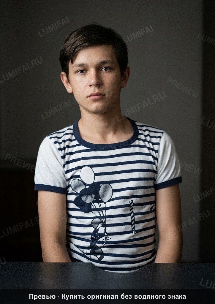 Perform meticulous non-destructive restoration and colorization of this aged photograph. Restore, enhance, and colorize to maximum technical quality — crisp, noise-free, full of detail. Add historically accurate colors. Output MUST have the EXACT same aspect ratio as the input. Colorize the EXISTING photograph using SVEMA 130 color palette: featuring moderate saturation, slightly cool neutral midtones, and natural warm-neutral skin. The tonal balance should reflect an 1980s Eastern European analog film aesthetic with muted but grounded colors and deep, stable blacks. 1. DAMAGE MAP: Damage is heavily concentrated in a dense haze of silvering, heavy chemical fogging, and surface abrasions across the entire background and the margins of the subject. Significant scuffing and fine white scratches cover the lower and left edges. 2. BACKGROUND/ENVIRONMENT: Remove all chemical fogging, haze, and "silver mirroring" effects. Restore the background to a clean, solid depth. Colorize with deep, natural interior tones—moderate brown or dark neutral shades. The wall and space behind the person must be rendered as sharp and noise-free as the subject itself. 3. FOREGROUND: Clean all white dust particles and chemical spots from the lower third of the image. Restore the dark surface in the immediate foreground to a clean, textured finish. 4. CLOTHING: Focus intense restoration on the striped T-shirt. Remove the fading and hazing. Define the sharp contrast between the dark stripes and the white fabric. Colorize the stripes (navy blue or dark green) and the graphic detail on the chest with moderate, realistic saturation. Restore the fabric weave and collar stitching detail to be crisp and tactile. 5. EDGES/CORNERS: Aggressively target the heavy wear and chemical degradation at the four corners and the top horizontal edge. Ensure these areas match the center of the image in clarity and color density. 6. FACE: Restore skin using a warm-neutral Eastern European tone—neither orange nor ghostly pale. Preserve existing skin texture, iris detail, and hair strands without waxy smoothing. Recover the eyes and mouth from the localized fading. Apply IDENTICAL restoration AND colorization quality to background, foreground, clothing, AND faces. Background must be as sharp, detailed, and richly colorized as the face. WARNING: You have a natural bias toward faces. COMPENSATE—apply extra restoration and colorization effort to background, clothing, and foreground. Natural analog-film palette — moderate saturation, warm-neutral tones. ALL areas processed with EQUAL quality. Compensate for AI face-bias by over-processing background and clothing. ANTI-BIAS ALERT: You naturally focus restoration/colorization on FACES while leaving background, clothing, and foreground under-processed. This is the #1 quality failure. Consciously counteract this. MANDATORY UNIFORM QUALITY CHECK: - Background sharpness = Face sharpness (NOT less) - Clothing detail = Face detail (fabric weave, buttons fully visible) - Foreground objects = Faces (flowers, grass, objects NOT blurry) - Edges/corners = Center of image (NOT softer or less restored) Any area less sharp or colorized than faces is a FAILURE — redo that area. ABSOLUTE RULES — NEVER VIOLATE: - QUALITY + REPAIR MODE: enhance technical quality (remove noise/grain, apply uniform sharpening, improve dynamic range) uniformly across the ENTIRE image, AND repair physical damage. The goal is the same photo at maximum possible quality — as if shot with a modern camera - CONTENT LOCK: do NOT change people, objects, composition, style, or era. Same scene, same identity — just technically better. Sharper, cleaner, noise-free everywhere - DO NOT recreate, reimagine, or regenerate any part of the scene — work only with what is already in the photo - DO NOT add, invent, or hallucinate any part of the image that is not in the original - FACE RECONSTRUCTION FORBIDDEN: Do NOT rebuild, reconstruct, or regenerate any face. Ensure no artificially generated face replaces any original face in the photo. Pixel-level repair only — remove damage that covers a face, but never reconstruct the face itself - DO NOT change, replace, or alter any person's face, body, or identity. 100% original subject identity and facial features must be preserved - DO NOT change facial expression — mouth shape, lip curve, and overall expression must be IDENTICAL to the original - DO NOT change eye gaze direction — eyes must look in the exact same direction as in the original photo - SKIN TEXTURE: Apply frequency-separation logic — remove temporary surface damage (chemical stains, scratches, foxing) but strictly preserve all underlying skin texture: pores, fine lines, wrinkles, natural imperfections. Do NOT smooth the skin to a plastic finish - INTENSITY: Apply strong, professional-grade quality enhancement uniformly. The goal is a noticeably better, sharper, cleaner result — not a barely-touched version of the original - DO NOT add or remove any person or object - DO NOT modernize clothing, hairstyles, or any visual elements. Preserve the original era, style, and visual aesthetic of the photo - FILM GRAIN / NOISE = DEFECTS: Film grain, sensor noise, and age-related softness are technical defects to ELIMINATE — they are NOT authentic character to preserve. Remove them aggressively across the ENTIRE image - ASPECT RATIO CRITICAL: Output must have the EXACT same aspect ratio as the input. DO NOT crop, add borders, expand canvas, or shift composition. Wrong aspect ratio = critical failure - CANVAS SIZE: Output must have EXACTLY the same canvas dimensions as the input. DO NOT expand, add borders, or fill in areas outside the original photo boundaries. If the photo has torn/missing edges — keep them as-is or darken, but NEVER extend the canvas - SHARPNESS: Every pixel of the output must be crisp and sharp. NO softness, NO blur, NO smoothing anywhere. Blurry output is a critical failure - SKIN COLOR: Eastern Europ