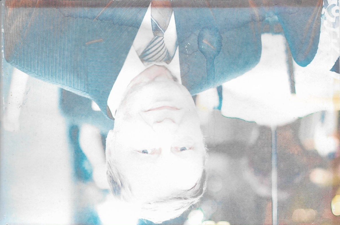 Perform meticulous non-destructive restoration and colorization of this aged photograph. Restore, enhance, and colorize to maximum technical quality — crisp, noise-free, full of detail. Add historically accurate colors. Output MUST have the EXACT same aspect ratio as the input. Colorize the EXISTING photograph using ORWO Color NC / SVEMA 130 color palette: this film features moderate saturation with slightly cool midtones and natural warm-neutral skin tones that are grounded and muted, avoiding any digital over-saturation. 1. Damage Map: Aggressively target the severe chemical staining, water marks, and color bleeding concentrated across the top half of the image (the subject's suit and background). Remove the vertical scratches, dust motes, and heavy grain visible in the white overexposed areas of the bottom foreground. 2. Background: Restore the out-of-focus interior. Apply deep, natural tones to the background elements, ensuring they are noise-free and color-matched to the 1980s Soviet era. The background must be as sharp and richly colorized as the face. 3. Foreground: Correct the extreme overexposure in the lower portion of the frame. Recover detail in the table or surface in front of the man, removing the yellow chemical spots and ensuring the transition from light to dark is smooth and detailed. 4. Clothing: Restore the man's suit jacket, striped tie, and white collared shirt. Remove all blue chemical staining and splotches from the lapels and shoulders. Reveal the distinct fabric weave and crispness of the tie's stripes. Colorize the suit with a historically accurate charcoal or deep navy ORWO-style tone. 5. Edges and Corners: Correct the fading and light leaks along the left and right borders. Remove the brown chemical residue at the very top edge. 6. Faces: Restore the man’s face by recovering detail from the overexposed areas. Skin tone must be a natural WARM-NEUTRAL Eastern European tone—STRICTLY FORBIDDEN are orange, red, or ghostly white hues. Preserve all existing skin texture, including natural lines and eye detail, without any waxy smoothing. Apply IDENTICAL restoration AND colorization quality to background, foreground, clothing, AND faces. WARNING: You have a natural bias toward faces. COMPENSATE—apply extra restoration and colorization effort to background and clothing to ensure a uniform result. Natural analog-film palette — moderate saturation, warm-neutral tones. ALL areas processed with EQUAL quality. Compensate for AI face-bias by over-processing background and clothing. ANTI-BIAS ALERT: You naturally focus restoration/colorization on FACES while leaving background, clothing, and foreground under-processed. This is the #1 quality failure. Consciously counteract this. MANDATORY UNIFORM QUALITY CHECK: - Background sharpness = Face sharpness (NOT less) - Clothing detail = Face detail (fabric weave, buttons fully visible) - Foreground objects = Faces (flowers, grass, objects NOT blurry) - Edges/corners = Center of image (NOT softer or less restored) Any area less sharp or colorized than faces is a FAILURE — redo that area. ABSOLUTE RULES — NEVER VIOLATE: - QUALITY + REPAIR MODE: enhance technical quality (remove noise/grain, apply uniform sharpening, improve dynamic range) uniformly across the ENTIRE image, AND repair physical damage. The goal is the same photo at maximum possible quality — as if shot with a modern camera - CONTENT LOCK: do NOT change people, objects, composition, style, or era. Same scene, same identity — just technically better. Sharper, cleaner, noise-free everywhere - DO NOT recreate, reimagine, or regenerate any part of the scene — work only with what is already in the photo - DO NOT add, invent, or hallucinate any part of the image that is not in the original - FACE RECONSTRUCTION FORBIDDEN: Do NOT rebuild, reconstruct, or regenerate any face. Ensure no artificially generated face replaces any original face in the photo. Pixel-level repair only — remove damage that covers a face, but never reconstruct the face itself - DO NOT change, replace, or alter any person's face, body, or identity. 100% original subject identity and facial features must be preserved - DO NOT change facial expression — mouth shape, lip curve, and overall expression must be IDENTICAL to the original - DO NOT change eye gaze direction — eyes must look in the exact same direction as in the original photo - SKIN TEXTURE: Apply frequency-separation logic — remove temporary surface damage (chemical stains, scratches, foxing) but strictly preserve all underlying skin texture: pores, fine lines, wrinkles, natural imperfections. Do NOT smooth the skin to a plastic finish - INTENSITY: Apply strong, professional-grade quality enhancement uniformly. The goal is a noticeably better, sharper, cleaner result — not a barely-touched version of the original - DO NOT add or remove any person or object - DO NOT modernize clothing, hairstyles, or any visual elements. Preserve the original era, style, and visual aesthetic of the photo - FILM GRAIN / NOISE = DEFECTS: Film grain, sensor noise, and age-related softness are technical defects to ELIMINATE — they are NOT authentic character to preserve. Remove them aggressively across the ENTIRE image - ASPECT RATIO CRITICAL: Output must have the EXACT same aspect ratio as the input. DO NOT crop, add borders, expand canvas, or shift composition. Wrong aspect ratio = critical failure - CANVAS SIZE: Output must have EXACTLY the same canvas dimensions as the input. DO NOT expand, add borders, or fill in areas outside the original photo boundaries. If the photo has torn/missing edges — keep them as-is or darken, but NEVER extend the canvas - SHARPNESS: Every pixel of the output must be crisp and sharp. NO softness, NO blur, NO smoothing anywhere. Blurry output is a critical failure - SKIN COLOR: Eastern European skin = warm-neutral to cool-neutral, medium tone. NEVER red or orange. NEVER ghostly pale or washed-out. NEVE