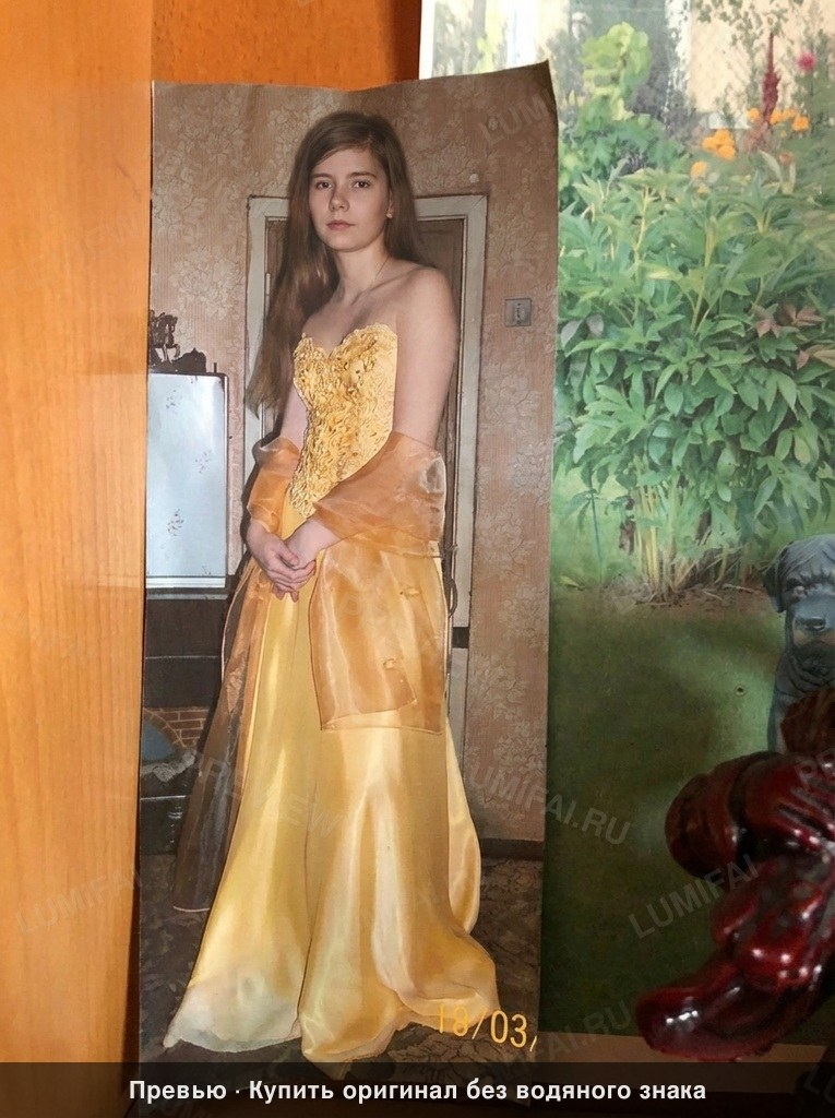 Colorize this existing photograph using late SVEMA / TASMA color palette: featuring natural warm-neutral skin tones, moderate saturation, and grounded organic colors typical of late 1980s or early 1990s Eastern European photography. The palette should maintain a clean, analog-film aesthetic with realistic contrast and no digital over-saturation. DAMAGE MAP AND RESTORATION: The most severe damage is a vertical green-tinted chemical stain and liquid oxidation streak running down the center of the image, covering the subject's left eye, cheek, neck, chest, and the front of the dress. There is also a significant fold/crease at the bottom-left corner and minor edge wear. Completely remove the green chemical stain, restoring the hidden skin, eye detail, and dress fabric underneath without leaving any ghosting or artifacts. BACKGROUND AND ENVIRONMENT: Restore and colorize the background with 100% parity to the subject. Colorize the patterned wallpaper in a muted, warm-neutral cream or beige. Enhance the wooden door frame and door behind the girl, bringing out the wood grain and brown satin finish. Restore the detail of the appliance to the left (likely a refrigerator), removing the grain and highlighting its metallic white surface. Ensure the floor area and the wall socket on the right are sharp, clear, and naturally colorized. The background must not be blurred or neglected. FOREGROUND AND EDGES: Repair the bottom edge "10/03" date stamp area and the corner folds. Ensure the carpet or floor in the foreground has a clear texture and natural color. Apply the same level of sharpening and restoration to the very edges of the frame as you do to the center. CLOTHING: Restore the yellow formal gown and sheer wrap. Use the existing yellow as a base but render it with the richness of actual fabric weave—satin and organza. Remove all green chemical staining from the dress. Restore the intricate decorative beadwork or floral appliqués on the bodice, ensuring every stitch is sharp. The sheer orange-yellow wrap should remain translucent, showing the fabric texture and the arm underneath. FACES AND SKIN: Restore the face by removing the green streak across the left eye and cheek. Use the undamaged right side of the face as a reference to reconstruct the left side perfectly. Skin tone must be WARM-NEUTRAL (Eastern European/Slavic type)—neither orange nor ghostly white. Preserve all real skin texture, including the natural shape of the eyelids, the philtrum, and the subtle lines of the neck. Do not airbrush; the skin must look like a real person with natural micro-details. Eyes should have natural iris coloring and clear whites, with no artificial glow. Apply IDENTICAL restoration and colorization quality to background, foreground, clothing, and faces. Background must be as sharp and richly colorized as the face. Natural analog-film palette—moderate saturation, warm-neutral tones. ALL areas processed with EQUAL quality. Compensate for AI face-bias by over-processing the restoration of the background, door textures, and gown fabric. ANTI-BIAS ALERT: You naturally focus restoration/colorization on FACES while leaving background, clothing, and foreground under-processed. This is the #1 quality failure. Consciously counteract this. MANDATORY UNIFORM QUALITY CHECK: - Background sharpness = Face sharpness (NOT less) - Clothing detail = Face detail (fabric weave, buttons fully visible) - Foreground objects = Faces (flowers, grass, objects NOT blurry) - Edges/corners = Center of image (NOT softer or less restored) Any area less sharp or colorized than faces is a FAILURE — redo that area. ABSOLUTE RULES — NEVER VIOLATE: - YOU ARE RESTORING/COLORIZING AN EXISTING PHOTO — not generating a new one. Every pixel must correspond to the original image. - DO NOT recreate, reimagine, or regenerate any part of the scene — work only with what is already in the photo - DO NOT add, invent, or hallucinate any part of the image that is not in the original - DO NOT change the framing or composition — keep it exactly the same - DO NOT add any new damage, folds, creases, tears, dark borders, vignettes, or artifacts - DO NOT change, replace, or alter any person's face, body, or identity - DO NOT add or remove any person or object - DO NOT modernize clothing, hairstyles, or any visual elements - Keep the exact same framing, crop, and aspect ratio as the original - SKIN COLOR: Eastern European skin = warm-neutral to cool-neutral, medium tone. NEVER red or orange. NEVER ghostly pale or washed-out. NEVER airbrushed or plastic. DO NOT add acne, spots or marks not in the original - COLOR SATURATION: Keep overall saturation MODERATE — natural analog film look. NOT vivid digital. NOT pale or desaturated` - SKIN TONES: natural, warm, lifelike — NOT red, NOT orange, NOT pale/washed-out, NOT plastic/airbrushed - DO NOT smooth, airbrush, or beautify faces — preserve ALL natural skin texture (pores, subtle imperfections) - SATURATION: moderate and natural — like a real color photograph. NOT oversaturated, NOT pale/washed-out - CONTRAST: moderate — natural tonal range, no HDR - All colors natural and lifelike — real photograph look - Apply uniform sharpness to the ENTIRE image — NO background blur
