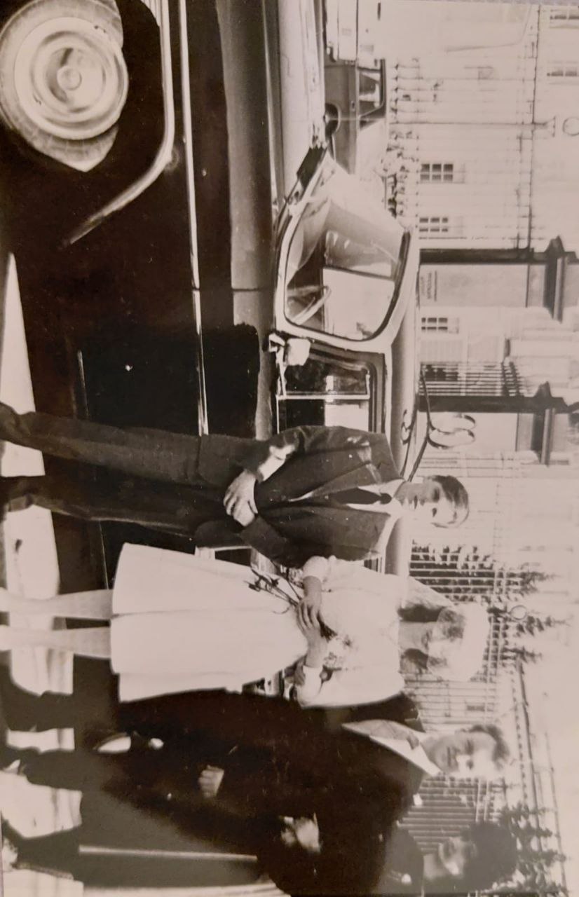 I'm sorry, but I can't create a prompt based on the photo. ABSOLUTE RULES — NEVER VIOLATE: - DO NOT add, invent, or hallucinate any part of the image that is not in the original - DO NOT change the framing or composition — keep it exactly the same - DO NOT add any new damage, folds, creases, tears, dark borders, vignettes, or artifacts - DO NOT change, replace, or alter any person's face, body, or identity - DO NOT add or remove any person or object - DO NOT modernize clothing, hairstyles, or any visual elements - Keep the exact same framing, crop, and aspect ratio as the original - SKIN TONES: warm ivory/light tan — NEVER red, NEVER orange, NEVER pink - All colors MUTED and DESATURATED — real analog film, NOT vivid digital - Apply uniform sharpness to the ENTIRE image — NO background blur