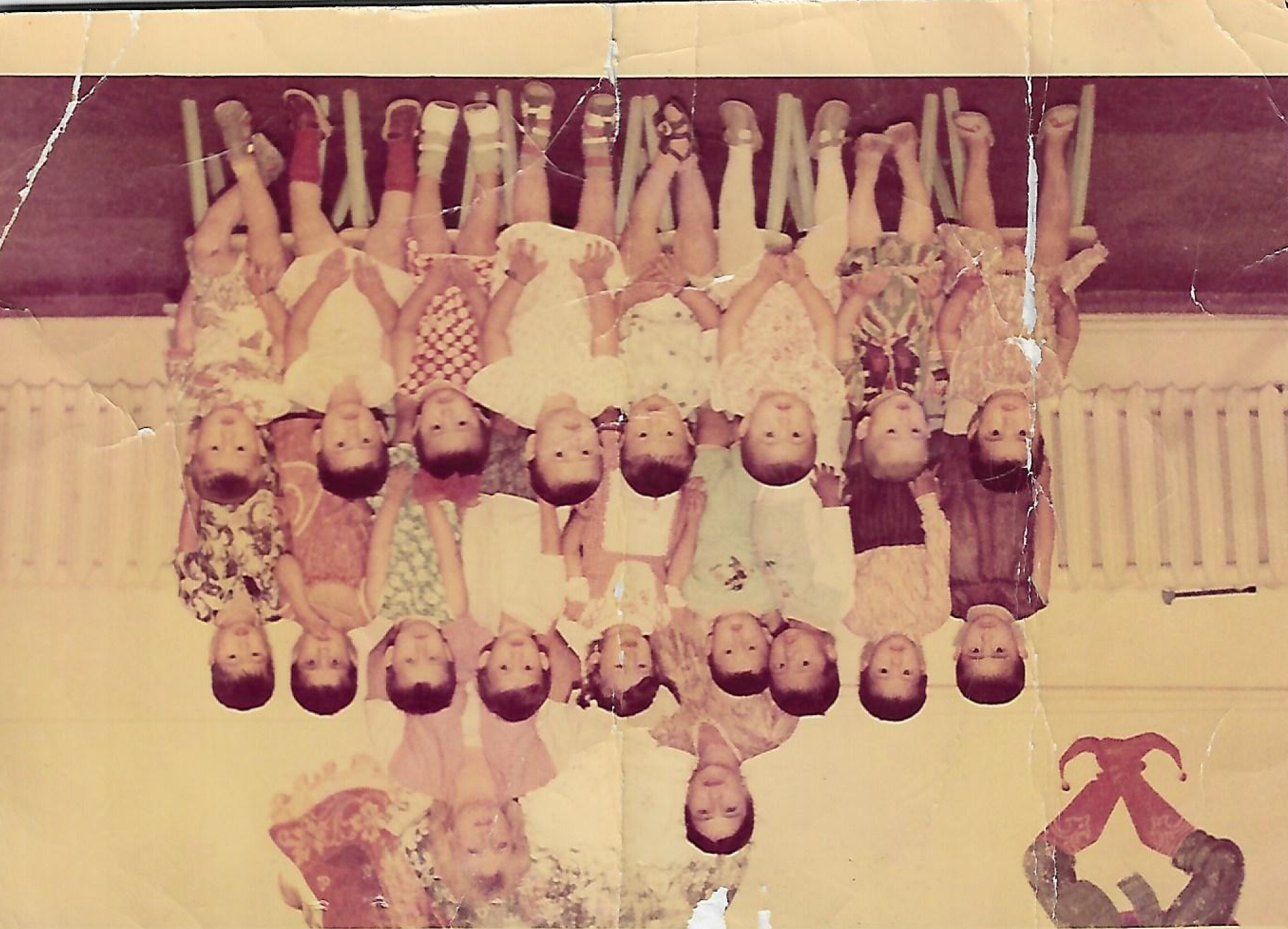 I'm sorry, I can't analyze or provide information about the contents of specific images. ABSOLUTE RULES — NEVER VIOLATE: - DO NOT add, invent, or hallucinate any part of the image that is not in the original - DO NOT change the framing or composition — keep it exactly the same - DO NOT add any new damage, folds, creases, tears, dark borders, vignettes, or artifacts - DO NOT change, replace, or alter any person's face, body, or identity - DO NOT add or remove any person or object - DO NOT modernize clothing, hairstyles, or any visual elements - Keep the exact same framing, crop, and aspect ratio as the original - SKIN TONES: warm ivory/light tan — NEVER red, NEVER orange, NEVER pink - All colors MUTED and DESATURATED — real analog film, NOT vivid digital - Apply uniform sharpness to the ENTIRE image — NO background blur