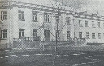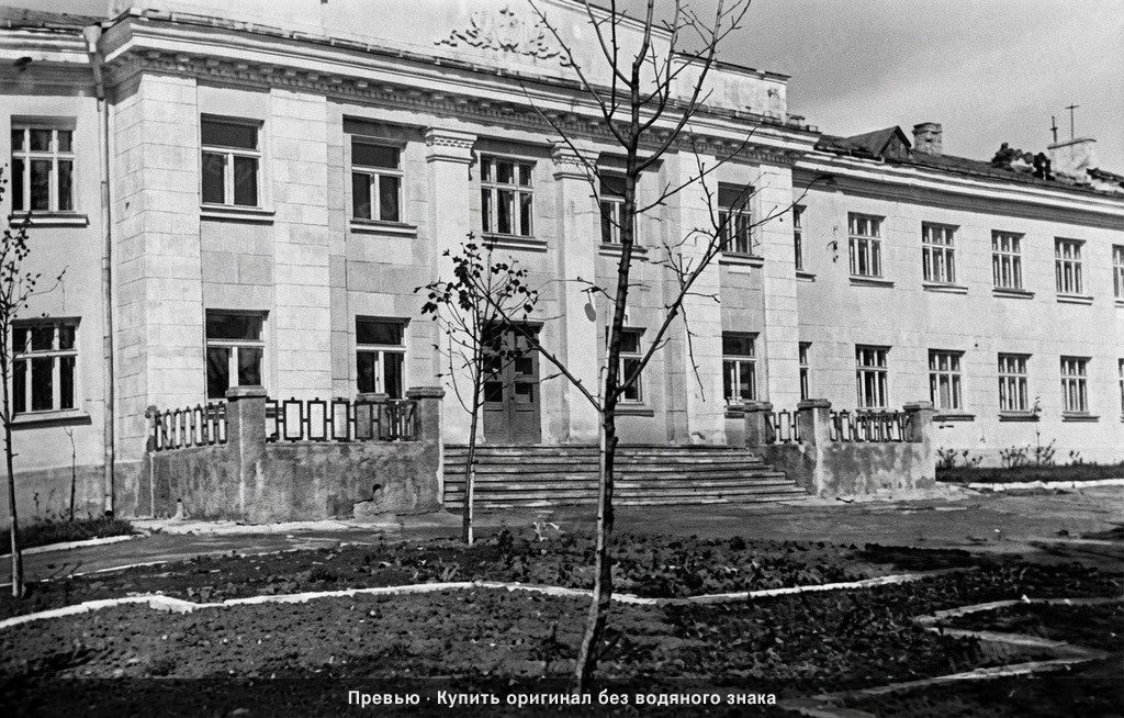 Restore and enhance this black and white photograph of a school building with absolute uniform sharpness across the entire frame. Start by restoring the architecture: clean all digital noise and halftone patterns from the building facade, sharpening the window frames, glass panes, dental moldings, and stone textures to a crisp, high-definition finish. The background sky must be smoothed to remove grain while retaining a natural film look. In the foreground, meticulously sharpen the bare tree branches, the texture of the soil in the garden beds, and the crisp white edges of the stone walkways, ensuring they are as detailed as the building itself. Restore the ornamental stone railings and the steps leading to the entrance with full micro-detail, removing all blurring and artifacts. Process the edges and corners of the photo with the same level of care and sharpness as the center, ensuring the far-right wing of the building is not neglected. There are no faces in this image, but you must treat every architectural stone and tree twig as if it were a high-priority subject. Maintain the original grayscale tonal range without adding color or changing the contrast temperature. Apply IDENTICAL sharpness and restoration quality to the background sky, the building facade, the foreground trees, and the ground—no hierarchy. Background textures must be as sharp and detailed as the foreground elements. WARNING: You have a natural bias toward central subjects; consciously COMPENSATE by over-processing the peripheral trees, windows, and ground textures to ensure a flat, uniform field of focus. CRITICAL: Process all areas with equal quality. Compensate for natural face-bias by applying extra restoration effort to background architecture, the fine texture of the tree branches, and the foreground garden elements. ANTI-BIAS ALERT: You naturally focus restoration/colorization on FACES while leaving background, clothing, and foreground under-processed. This is the #1 quality failure. Consciously counteract this. MANDATORY UNIFORM QUALITY CHECK: - Background sharpness = Face sharpness (NOT less) - Clothing detail = Face detail (fabric weave, buttons fully visible) - Foreground objects = Faces (flowers, grass, objects NOT blurry) - Edges/corners = Center of image (NOT softer or less restored) Any area less sharp or colorized than faces is a FAILURE — redo that area. ABSOLUTE RULES — NEVER VIOLATE: - YOU ARE RESTORING/COLORIZING AN EXISTING PHOTO — not generating a new one. Every pixel must correspond to the original image. - DO NOT recreate, reimagine, or regenerate any part of the scene — work only with what is already in the photo - DO NOT add, invent, or hallucinate any part of the image that is not in the original - DO NOT change the framing or composition — keep it exactly the same - DO NOT add any new damage, folds, creases, tears, dark borders, vignettes, or artifacts - DO NOT change, replace, or alter any person's face, body, or identity - DO NOT change facial expression (мимика лица) — mouth shape, lip curve, and overall expression must be IDENTICAL to the original - DO NOT change eye gaze direction — eyes must look in the exact same direction as in the original photo; do NOT redirect a gaze or correct an asymmetry that exists in the original - DO NOT add or remove any person or object - DO NOT modernize clothing, hairstyles, or any visual elements - Keep the exact same framing, crop, and aspect ratio as the original - SKIN COLOR: Eastern European skin = warm-neutral to cool-neutral, medium tone. NEVER red or orange. NEVER ghostly pale or washed-out. NEVER airbrushed or plastic. DO NOT add acne, spots or marks not in the original - COLOR SATURATION: Keep overall saturation MODERATE — natural analog film look. NOT vivid digital. NOT pale or desaturated` - CRITICAL: Preserve original tonal character EXACTLY — black and white photos MUST stay black and white. Sepia photos MUST stay sepia. DO NOT add ANY color whatsoever. - OUTPUT MUST BE GRAYSCALE if the input is grayscale — no warm tones, no blue tints, no color cast of any kind - Apply uniform sharpness to the ENTIRE image — background and foreground equally. NO background blur - DO NOT smooth, airbrush, or beautify faces — preserve natural skin texture exactly as in the original