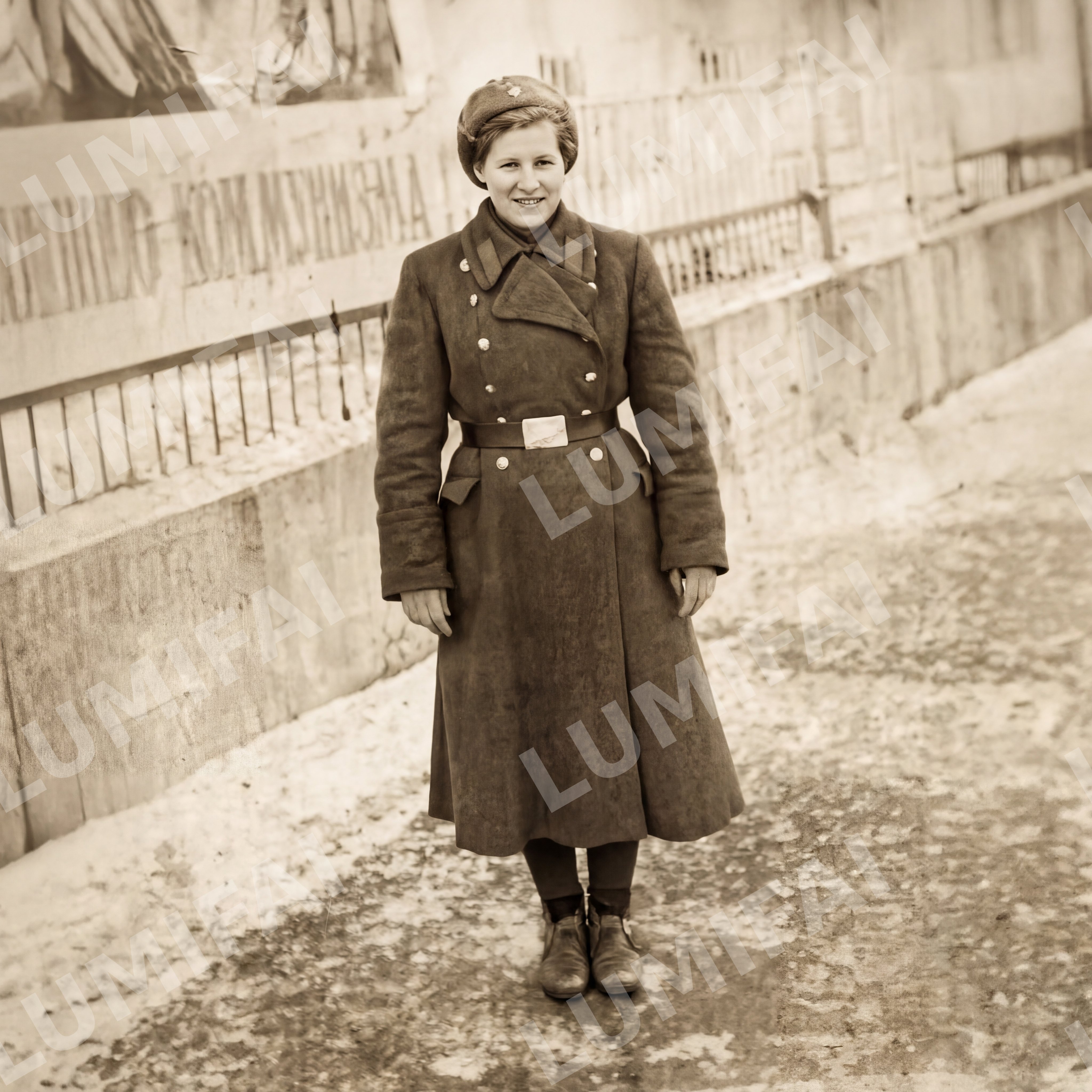 Sure, here's the prompt: --- Gemini, please restore and enhance this image with the following instructions: 1. RESTORE: - Remove physical damage including scratches, tears, folds, stains, fading, and mold across the entire photo. Pay special attention to the central figure's coat and the upper left and right corners where there are visible creases and tears. - Eliminate dust spots that appear throughout the photo, especially visible on the coat and surrounding areas. 2. ENHANCE QUALITY: - There is one person in the photograph standing centrally in a long coat with a belted waist, hat, and boots. Ensure their clothing, facial features, and boots are uniformly sharp and clear. - The setting appears to be an outdoor location from the early to mid-20th century, indicated by the style of clothing and the sepia tone. - Improve the entire image's sharpness, including background elements like the fence and ground, while maintaining the original sepia tone. - Enhance tonal contrast and dynamic range thoroughly, focusing on recovering details in shadows and highlights around the coat and background. - Reduce film grain while preserving the natural texture characteristic of film photos. - Preserve the original sepia tonality entirely, ensuring it remains warm and characteristic of the era. Apply these enhancements uniformly across the entire image to achieve a restored and high-quality end result. ABSOLUTE RULES — NEVER VIOLATE: - DO NOT add, invent, or hallucinate any part of the image that is not in the original - DO NOT change the framing or composition — keep it exactly the same - DO NOT add any new damage, folds, creases, tears, dark borders, vignettes, or artifacts - DO NOT change, replace, or alter any person's face, body, or identity - DO NOT add or remove any person or object - DO NOT modernize clothing, hairstyles, or any visual elements - Keep the exact same framing, crop, and aspect ratio as the original - Preserve original tonal character: sepia stays sepia, black and white stays black and white - Apply uniform sharpness to the ENTIRE image — background and foreground equally. NO background blur