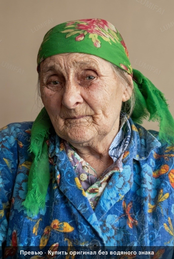 Restore and enhance this photograph to maximum technical clarity while maintaining a natural, muted color palette. Replace the textured wallpaper background with a clean, smooth, solid-colored wall in a neutral beige or soft tan tone to eliminate busy patterns. Ensure all colors—especially the green headscarf and blue jacket—are realistic, calibrated, and not overly bright or saturated. Face and Identity: Sharpen the face to reveal crisp details without changing facial structure, expression, or identity. Preserve natural skin texture, including deep wrinkles, fine lines, and pores; avoid a plastic or airbrushed appearance. Clothing and Fabrics: Enhance the micro-details of the green headscarf and the floral/butterfly patterns on the blue jacket. Sharpen every thread and seam, but keep the tones grounded and realistic rather than neon. Balance any white glare on the shoulder to show true fabric weave. Technical Quality: Remove all noise, film grain, and motion blur uniformly. Repair surface imperfections, white dust specks, and chemical spots. Fix vignetting in the corners and remove the frame edges at the top and right, extending the new smooth background naturally. Mandatory Constraints: - Colors must be natural and moderate, NOT vivid or glowing. - Background must be smooth, flat, and noise-free. - Uniform sharpness everywhere: background, clothing, and face must be equally crisp. - Zero changes to identity, expression, or composition. - Maintain the exact aspect ratio and framing of the original. - Do not beautify; preserve the authentic age and soul of the subject. ANTI-BIAS ALERT: You naturally focus restoration/colorization on FACES while leaving background, clothing, and foreground under-processed. This is the #1 quality failure. Consciously counteract this. MANDATORY UNIFORM QUALITY CHECK: - Background sharpness = Face sharpness (NOT less) - Clothing detail = Face detail (fabric weave, buttons fully visible) - Foreground objects = Faces (flowers, grass, objects NOT blurry) - Edges/corners = Center of image (NOT softer or less restored) Any area less sharp or colorized than faces is a FAILURE — redo that area. ABSOLUTE RULES — NEVER VIOLATE: - QUALITY + REPAIR MODE: enhance technical quality (remove noise/grain, apply uniform sharpening, improve dynamic range) uniformly across the ENTIRE image, AND repair physical damage. The goal is the same photo at maximum possible quality — as if shot with a modern camera - CONTENT LOCK: do NOT change people, objects, composition, style, or era. Same scene, same identity — just technically better. Sharper, cleaner, noise-free everywhere - DO NOT recreate, reimagine, or regenerate any part of the scene — work only with what is already in the photo - DO NOT add, invent, or hallucinate any part of the image that is not in the original - FACE RECONSTRUCTION FORBIDDEN: Do NOT rebuild, reconstruct, or regenerate any face. Ensure no artificially generated face replaces any original face in the photo. Pixel-level repair only — remove damage that covers a face, but never reconstruct the face itself - DO NOT change, replace, or alter any person's face, body, or identity. 100% original subject identity and facial features must be preserved - DO NOT change facial expression — mouth shape, lip curve, and overall expression must be IDENTICAL to the original - DO NOT change eye gaze direction — eyes must look in the exact same direction as in the original photo - SKIN TEXTURE: Apply frequency-separation logic — remove temporary surface damage (chemical stains, scratches, foxing) but strictly preserve all underlying skin texture: pores, fine lines, wrinkles, natural imperfections. Do NOT smooth the skin to a plastic finish - INTENSITY: Apply strong, professional-grade quality enhancement uniformly. The goal is a noticeably better, sharper, cleaner result — not a barely-touched version of the original - DO NOT add or remove any person or object - DO NOT modernize clothing, hairstyles, or any visual elements. Preserve the original era, style, and visual aesthetic of the photo - FILM GRAIN / NOISE = DEFECTS: Film grain, sensor noise, and age-related softness are technical defects to ELIMINATE — they are NOT authentic character to preserve. Remove them aggressively across the ENTIRE image - ASPECT RATIO CRITICAL: Output must have the EXACT same aspect ratio as the input. DO NOT crop, add borders, expand canvas, or shift composition. Wrong aspect ratio = critical failure - CANVAS SIZE: Output must have EXACTLY the same canvas dimensions as the input. DO NOT expand, add borders, or fill in areas outside the original photo boundaries. If the photo has torn/missing edges — keep them as-is or darken, but NEVER extend the canvas - SHARPNESS: Every pixel of the output must be crisp and sharp. NO softness, NO blur, NO smoothing anywhere. Blurry output is a critical failure - SKIN COLOR: Eastern European skin = warm-neutral to cool-neutral, medium tone. NEVER red or orange. NEVER ghostly pale or washed-out. NEVER airbrushed or plastic. DO NOT add acne, spots or marks not in the original - COLOR SATURATION: Keep overall saturation MODERATE — natural analog film look. NOT vivid digital. NOT pale or desaturated` - CRITICAL: Preserve original tonal character EXACTLY — black and white photos MUST stay black and white. Sepia photos MUST stay sepia. DO NOT add ANY color whatsoever. - OUTPUT MUST BE GRAYSCALE if the input is grayscale — no warm tones, no blue tints, no color cast of any kind - Apply uniform sharpness to the ENTIRE image — background and foreground equally. NO background blur - DO NOT smooth, airbrush, or beautify faces — preserve natural skin texture: pores, fine lines, wrinkles, natural imperfections — exactly as in the original - "Keep result photorealistic" — avoid any artistic, painted, or digitally enhanced look