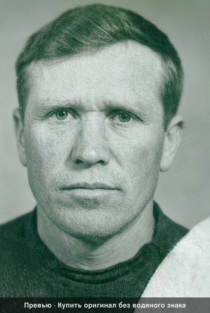 Perform a complete restoration of this photograph, maintaining its original greenish-monochrome tonal scale and atmospheric character. Start with the background wall and environment: remove all graininess, stippling artifacts, and uneven chemical staining; smooth the backdrop to a clean, uniform texture with zero depth-of-field blur, ensuring the wall's surface is as sharp as the subject. In the foreground, reconstruct the white object on the bottom right and the dark garment of the man; eliminate all white dust specks, chemical blooming, and mottled noise from the fabric. Focus intensely on clothing textures, restoring the specific weave of the dark sweater or coat and the neckline, ensuring micro-details are crisp and distinct. Process all four corners and edges of the image with the same intensity as the center, removing the fading and light-leak artifacts visible at the top and right margins. Finally, for the face and hair, remove the fine speckle noise and sharpen the eyes, lips, and hair strands while preserving the man's original expression and features. Apply IDENTICAL sharpness and restoration quality to background, clothing, AND faces—no hierarchy. Every millimeter of this image must be in sharp focus with high tonal contrast. WARNING: You have a natural bias toward faces; consciously COMPENSATE by over-processing the background and clothing textures to maintain perfect uniformity. CRITICAL: Process all areas with equal quality. Compensate for natural face-bias by applying extra restoration effort to background, clothing, and foreground objects. ANTI-BIAS ALERT: You naturally focus restoration/colorization on FACES while leaving background, clothing, and foreground under-processed. This is the #1 quality failure. Consciously counteract this. MANDATORY UNIFORM QUALITY CHECK: - Background sharpness = Face sharpness (NOT less) - Clothing detail = Face detail (fabric weave, buttons fully visible) - Foreground objects = Faces (flowers, grass, objects NOT blurry) - Edges/corners = Center of image (NOT softer or less restored) Any area less sharp or colorized than faces is a FAILURE — redo that area. ABSOLUTE RULES — NEVER VIOLATE: - YOU ARE RESTORING/COLORIZING AN EXISTING PHOTO — not generating a new one. Every pixel must correspond to the original image. - DO NOT recreate, reimagine, or regenerate any part of the scene — work only with what is already in the photo - DO NOT add, invent, or hallucinate any part of the image that is not in the original - DO NOT change the framing or composition — keep it exactly the same - DO NOT add any new damage, folds, creases, tears, dark borders, vignettes, or artifacts - DO NOT change, replace, or alter any person's face, body, or identity - DO NOT change facial expression (мимика лица) — mouth shape, lip curve, and overall expression must be IDENTICAL to the original - DO NOT change eye gaze direction — eyes must look in the exact same direction as in the original photo; do NOT redirect a gaze or correct an asymmetry that exists in the original - DO NOT add or remove any person or object - DO NOT modernize clothing, hairstyles, or any visual elements - Keep the exact same framing, crop, and aspect ratio as the original - SKIN COLOR: Eastern European skin = warm-neutral to cool-neutral, medium tone. NEVER red or orange. NEVER ghostly pale or washed-out. NEVER airbrushed or plastic. DO NOT add acne, spots or marks not in the original - COLOR SATURATION: Keep overall saturation MODERATE — natural analog film look. NOT vivid digital. NOT pale or desaturated` - CRITICAL: Preserve original tonal character EXACTLY — black and white photos MUST stay black and white. Sepia photos MUST stay sepia. DO NOT add ANY color whatsoever. - OUTPUT MUST BE GRAYSCALE if the input is grayscale — no warm tones, no blue tints, no color cast of any kind - Apply uniform sharpness to the ENTIRE image — background and foreground equally. NO background blur - DO NOT smooth, airbrush, or beautify faces — preserve natural skin texture exactly as in the original