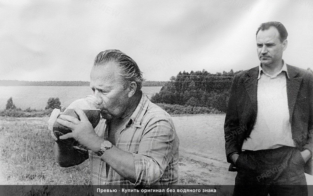 Restore and enhance this photograph to its maximum possible technical quality. The result must look like a sharp modern high-quality scan of a perfectly preserved original — crisp, noise-free, full of detail — while every person, object, and composition remains completely unchanged. This black and white restoration must completely remove all film grain and hazy softness across the entire frame. Start by reconstructing the background: apply deep sharpening to the distant shoreline, the individual trees in the dense forest line, the texture of the open field, and the heavy cloud gradients in the sky. All scenic elements must be rendered with hyper-clear definition and zero noise. In the foreground, sharpen and define the large vessel the man is drinking from, rendering its surface texture and the man's wristwatch with metallic clarity. For clothing, recover every detail of the plaid pattern on the short-sleeved shirt, the knit of the undershirt, and the heavy fabric weave of the suit jacket, ensuring every button and seam is crisp. Fix all physical damage: remove the large white light leak and paper crease in the upper right corner over the standing man's head, eliminate the horizontal scratch lines across the center, and clear all white speckles and dust from the bottom and edges. Enhance face sharpness and remove noise like everywhere else. Remove any scratches. But DO NOT alter facial structure, expression, identity, or proportions. Preserve skin texture — pores, fine lines, natural imperfections. Do NOT smooth to plastic. The person must look identical — just sharper and cleaner. Apply IDENTICAL sharpness to background, clothing, AND faces. Background must be as sharp and detailed as any face. Blurry background = critical failure. Every area must be equally sharp. Background sharpness = face sharpness. No exceptions. ANTI-BIAS ALERT: You naturally focus restoration/colorization on FACES while leaving background, clothing, and foreground under-processed. This is the #1 quality failure. Consciously counteract this. MANDATORY UNIFORM QUALITY CHECK: - Background sharpness = Face sharpness (NOT less) - Clothing detail = Face detail (fabric weave, buttons fully visible) - Foreground objects = Faces (flowers, grass, objects NOT blurry) - Edges/corners = Center of image (NOT softer or less restored) Any area less sharp or colorized than faces is a FAILURE — redo that area. ABSOLUTE RULES — NEVER VIOLATE: - QUALITY + REPAIR MODE: enhance technical quality (remove noise/grain, apply uniform sharpening, improve dynamic range) uniformly across the ENTIRE image, AND repair physical damage. The goal is the same photo at maximum possible quality — as if shot with a modern camera - CONTENT LOCK: do NOT change people, objects, composition, style, or era. Same scene, same identity — just technically better. Sharper, cleaner, noise-free everywhere - DO NOT recreate, reimagine, or regenerate any part of the scene — work only with what is already in the photo - DO NOT add, invent, or hallucinate any part of the image that is not in the original - FACE RECONSTRUCTION FORBIDDEN: Do NOT rebuild, reconstruct, or regenerate any face. Ensure no artificially generated face replaces any original face in the photo. Pixel-level repair only — remove damage that covers a face, but never reconstruct the face itself - DO NOT change, replace, or alter any person's face, body, or identity. 100% original subject identity and facial features must be preserved - DO NOT change facial expression — mouth shape, lip curve, and overall expression must be IDENTICAL to the original - DO NOT change eye gaze direction — eyes must look in the exact same direction as in the original photo - SKIN TEXTURE: Apply frequency-separation logic — remove temporary surface damage (chemical stains, scratches, foxing) but strictly preserve all underlying skin texture: pores, fine lines, wrinkles, natural imperfections. Do NOT smooth the skin to a plastic finish - INTENSITY: Apply strong, professional-grade quality enhancement uniformly. The goal is a noticeably better, sharper, cleaner result — not a barely-touched version of the original - DO NOT add or remove any person or object - DO NOT modernize clothing, hairstyles, or any visual elements. Preserve the authentic archival character of the photo - Keep the exact same framing, crop, and aspect ratio as the original - CANVAS SIZE: Output must have EXACTLY the same canvas dimensions as the input. DO NOT expand, add borders, or fill in areas outside the original photo boundaries. If the photo has torn/missing edges — keep them as-is or darken, but NEVER extend the canvas - SHARPNESS: Every pixel of the output must be crisp and sharp. NO softness, NO blur, NO smoothing anywhere. Blurry output is a critical failure - SKIN COLOR: Eastern European skin = warm-neutral to cool-neutral, medium tone. NEVER red or orange. NEVER ghostly pale or washed-out. NEVER airbrushed or plastic. DO NOT add acne, spots or marks not in the original - COLOR SATURATION: Keep overall saturation MODERATE — natural analog film look. NOT vivid digital. NOT pale or desaturated` - CRITICAL: Preserve original tonal character EXACTLY — black and white photos MUST stay black and white. Sepia photos MUST stay sepia. DO NOT add ANY color whatsoever. - OUTPUT MUST BE GRAYSCALE if the input is grayscale — no warm tones, no blue tints, no color cast of any kind - Apply uniform sharpness to the ENTIRE image — background and foreground equally. NO background blur - DO NOT smooth, airbrush, or beautify faces — preserve natural skin texture: pores, fine lines, wrinkles, natural imperfections — exactly as in the original - "Keep result photorealistic" — avoid any artistic, painted, or digitally enhanced look