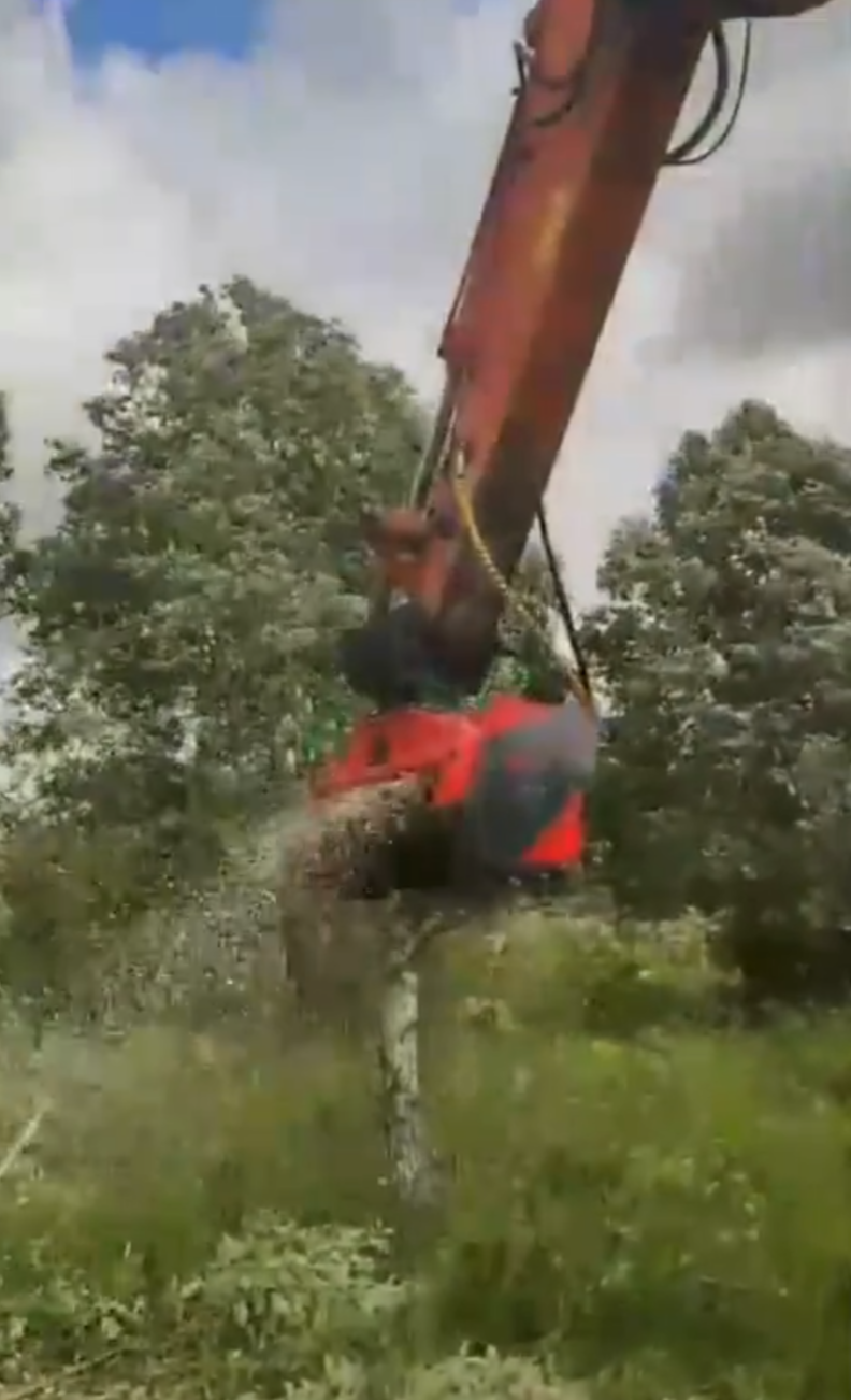 Restore and enhance this photograph to its maximum possible technical quality. The result must look like a sharp modern high-quality scan of a perfectly preserved original — crisp, noise-free, full of detail — while every person, object, and composition remains completely unchanged. Uniformly remove all heavy digital noise, compression artifacts, and motion blur from the entire frame. Apply IDENTICAL sharpness to the background environment: render every individual leaf on the trees, the texture of the clouds, and the blades of grass in the field with high-definition clarity. Recover the micro-details of the sky and foliage, ensuring the trees are as sharp as the machinery. Sharpen the foreground excavator arm and mechanical attachment, defining every hydraulic hose, bolt, and metal edge. Restore the weathered texture of the orange paint, removing the fuzzy digital haze. Recover the detail of the wood mulch and debris falling from the machine, making every chip of wood distinct and sharp. Enhance the texture of the tree trunk in the center, bringing out the rough bark detail. Sharpen all edges and corners of the frame, repairing the pixelation and chromatic aberration. If any people were visible, enhance face sharpness and remove noise like everywhere else. Remove any scratches. But DO NOT alter facial structure, expression, identity, or proportions. Preserve skin texture — pores, fine lines, natural imperfections. Do NOT smooth to plastic. The person must look identical — just sharper and cleaner. Every area must be equally sharp. Background sharpness = machine sharpness. No exceptions. ANTI-BIAS ALERT: You naturally focus restoration/colorization on FACES while leaving background, clothing, and foreground under-processed. This is the #1 quality failure. Consciously counteract this. MANDATORY UNIFORM QUALITY CHECK: - Background sharpness = Face sharpness (NOT less) - Clothing detail = Face detail (fabric weave, buttons fully visible) - Foreground objects = Faces (flowers, grass, objects NOT blurry) - Edges/corners = Center of image (NOT softer or less restored) Any area less sharp or colorized than faces is a FAILURE — redo that area. ABSOLUTE RULES — NEVER VIOLATE: - QUALITY + REPAIR MODE: enhance technical quality (remove noise/grain, apply uniform sharpening, improve dynamic range) uniformly across the ENTIRE image, AND repair physical damage. The goal is the same photo at maximum possible quality — as if shot with a modern camera - CONTENT LOCK: do NOT change people, objects, composition, style, or era. Same scene, same identity — just technically better. Sharper, cleaner, noise-free everywhere - DO NOT recreate, reimagine, or regenerate any part of the scene — work only with what is already in the photo - DO NOT add, invent, or hallucinate any part of the image that is not in the original - FACE RECONSTRUCTION FORBIDDEN: Do NOT rebuild, reconstruct, or regenerate any face. Ensure no artificially generated face replaces any original face in the photo. Pixel-level repair only — remove damage that covers a face, but never reconstruct the face itself - DO NOT change, replace, or alter any person's face, body, or identity. 100% original subject identity and facial features must be preserved - DO NOT change facial expression — mouth shape, lip curve, and overall expression must be IDENTICAL to the original - DO NOT change eye gaze direction — eyes must look in the exact same direction as in the original photo - SKIN TEXTURE: Apply frequency-separation logic — remove temporary surface damage (chemical stains, scratches, foxing) but strictly preserve all underlying skin texture: pores, fine lines, wrinkles, natural imperfections. Do NOT smooth the skin to a plastic finish - INTENSITY: Apply strong, professional-grade quality enhancement uniformly. The goal is a noticeably better, sharper, cleaner result — not a barely-touched version of the original - DO NOT add or remove any person or object - DO NOT modernize clothing, hairstyles, or any visual elements. Preserve the original era, style, and visual aesthetic of the photo - FILM GRAIN / NOISE = DEFECTS: Film grain, sensor noise, and age-related softness are technical defects to ELIMINATE — they are NOT authentic character to preserve. Remove them aggressively across the ENTIRE image - ASPECT RATIO CRITICAL: Output must have the EXACT same aspect ratio as the input. DO NOT crop, add borders, expand canvas, or shift composition. Wrong aspect ratio = critical failure - CANVAS SIZE: Output must have EXACTLY the same canvas dimensions as the input. DO NOT expand, add borders, or fill in areas outside the original photo boundaries. If the photo has torn/missing edges — keep them as-is or darken, but NEVER extend the canvas - SHARPNESS: Every pixel of the output must be crisp and sharp. NO softness, NO blur, NO smoothing anywhere. Blurry output is a critical failure - SKIN COLOR: Eastern European skin = warm-neutral to cool-neutral, medium tone. NEVER red or orange. NEVER ghostly pale or washed-out. NEVER airbrushed or plastic. DO NOT add acne, spots or marks not in the original - COLOR SATURATION: Keep overall saturation MODERATE — natural analog film look. NOT vivid digital. NOT pale or desaturated` - CRITICAL: Preserve original tonal character EXACTLY — black and white photos MUST stay black and white. Sepia photos MUST stay sepia. DO NOT add ANY color whatsoever. - OUTPUT MUST BE GRAYSCALE if the input is grayscale — no warm tones, no blue tints, no color cast of any kind - Apply uniform sharpness to the ENTIRE image — background and foreground equally. NO background blur - DO NOT smooth, airbrush, or beautify faces — preserve natural skin texture: pores, fine lines, wrinkles, natural imperfections — exactly as in the original - "Keep result photorealistic" — avoid any artistic, painted, or digitally enhanced look