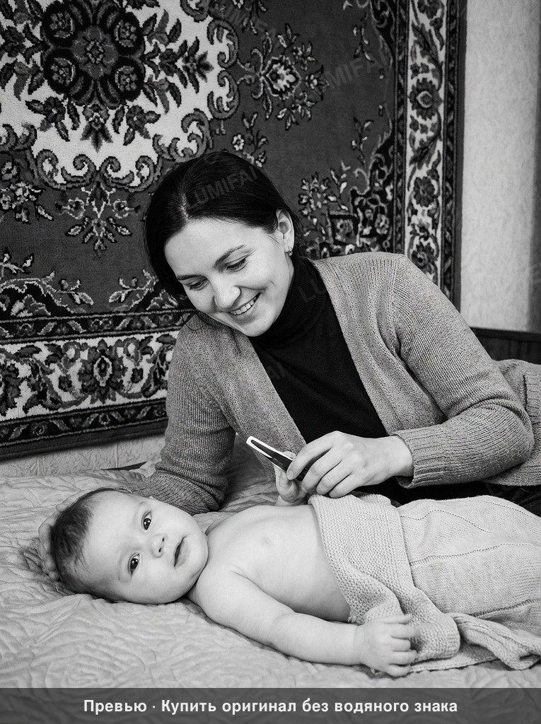 Apply uniform technical enhancement to this scanned image — treat every pixel region identically regardless of content. DO NOT use face detection, face restoration, or face-specific enhancement algorithms. Faces are NOT special regions — treat them exactly like walls, sky, furniture, or any background element. The enhancement quality must be identical across faces, background, clothing, and all other areas. Sharpen, denoise, and recover full detail in the background tapestry, floral rug patterns, and the wall surfaces. The intricate ornate patterns of the hanging rug behind the woman must be rendered with high precision, ensuring every thread and motif is as crisp as any face. Recover the contrast and shadow depth in the dark areas of the background decor. Sharpen and denoise the foreground objects, including the small toy or object held in the woman's hand and the textured nursery bedding or surface the child is lying on. These textures must be rendered with high-fidelity micro-detail. For the woman's clothing: sharpen the distinct knit pattern and weave of the cardigan or shaw, the scalloped lace edge, and the solid texture of the dark turtleneck underneath. Every fiber and stitch must be clearly defined. For the child's clothing and blankets, sharpen the fabric textures and eliminate all highlight blooming. Repair and sharpen the edges and corners of the photograph. Remove the upper portion of the scan that shows the album page holder and stars, focusing the restoration specifically on the photograph area itself. Physical damage list: Remove the heavy glare and overexposure washing out the woman's cheek and the child's face/torso. Eliminate the vertical noise patterns and the horizontal scanning artifacts visible in the lighter regions. Remove any dust specks and chemical fading spots. Correct the "blown-out" highlight regions to reveal the underlying textures. For faces: apply the EXACT SAME sharpening and denoising as the background and clothing — no more. DO NOT use face restoration, face upscaling, or face enhancement. Faces are just another region of the image — treat them as you would a textured wall. Do NOT alter facial structure, expression, identity, or proportions. Remove any damage by inpainting from context only. Preserve skin texture — pores, fine lines, natural imperfections. Maintain the original black and white monochromatic tonal character; do not add color. Output must have the EXACT same aspect ratio as the input. Do not expand the canvas. Do not fill in areas outside the original photo. Every area must be equally sharp and clean. Blurry background or unsharp clothing = critical failure. No area is more important than any other. ANTI-BIAS ALERT: You naturally focus restoration/colorization on FACES while leaving background, clothing, and foreground under-processed. This is the #1 quality failure. Consciously counteract this. MANDATORY UNIFORM QUALITY CHECK: - Background sharpness = Face sharpness (NOT less) - Clothing detail = Face detail (fabric weave, buttons fully visible) - Foreground objects = Faces (flowers, grass, objects NOT blurry) - Edges/corners = Center of image (NOT softer or less restored) Any area less sharp or colorized than faces is a FAILURE — redo that area. ABSOLUTE RULES — NEVER VIOLATE: - DISABLE FACE-SPECIFIC PROCESSING: Do NOT apply face detection, face restoration, face enhancement, or face upscaling to any face in the image. Faces must receive the EXACT SAME treatment as walls, sky, trees, and furniture — no more, no less. Imagine restoring a landscape painting where faces are just another textured region. - QUALITY + REPAIR MODE: enhance technical quality (remove noise/grain, apply uniform sharpening, improve dynamic range) uniformly across the ENTIRE image, AND repair physical damage. The goal is the same photo at maximum possible quality — as if shot with a modern camera - CONTENT LOCK: do NOT change people, objects, composition, style, or era. Same scene, same identity — just technically better. Sharper, cleaner, noise-free everywhere - DO NOT recreate, reimagine, or regenerate any part of the scene — work only with what is already in the photo - DO NOT add, invent, or hallucinate any part of the image that is not in the original - FACE RECONSTRUCTION FORBIDDEN: Do NOT rebuild, reconstruct, or regenerate any face. Ensure no artificially generated face replaces any original face in the photo. Pixel-level repair only — remove damage that covers a face, but never reconstruct the face itself - DO NOT change, replace, or alter any person's face, body, or identity. 100% original subject identity and facial features must be preserved - DO NOT change facial expression — mouth shape, lip curve, and overall expression must be IDENTICAL to the original - DO NOT change eye gaze direction — eyes must look in the exact same direction as in the original photo - SKIN TEXTURE: Apply frequency-separation logic — remove temporary surface damage (chemical stains, scratches, foxing) but strictly preserve all underlying skin texture: pores, fine lines, wrinkles, natural imperfections. Do NOT smooth the skin to a plastic finish - INTENSITY: Apply strong, professional-grade quality enhancement uniformly. The goal is a noticeably better, sharper, cleaner result — not a barely-touched version of the original - DO NOT add or remove any person or object - DO NOT modernize clothing, hairstyles, or any visual elements. Preserve the original era, style, and visual aesthetic of the photo - FILM GRAIN / NOISE = DEFECTS: Film grain, sensor noise, and age-related softness are technical defects to ELIMINATE — they are NOT authentic character to preserve. Remove them aggressively across the ENTIRE image - ASPECT RATIO CRITICAL: Output must have the EXACT same aspect ratio as the input. DO NOT crop, add borders, expand canvas, or shift composition. Wrong aspect ratio = critical failure - CANVAS SIZE: Output must have EXACTLY the same canvas