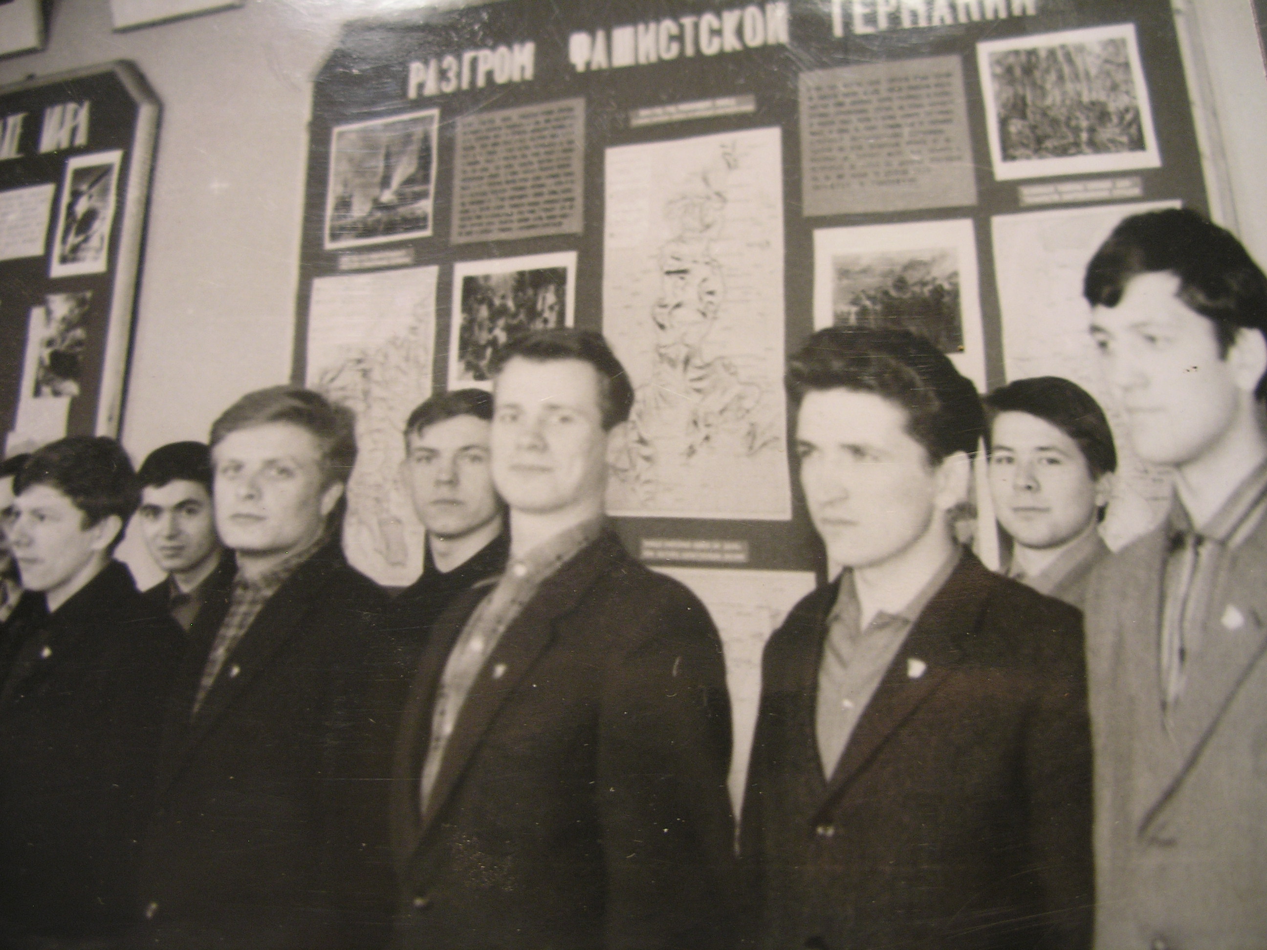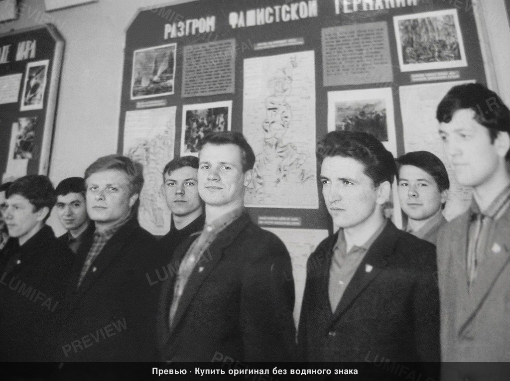 Restore and enhance this photograph to its maximum possible technical quality — uniformly across every pixel. Background, clothing, sky, ground, objects must be as sharp and detailed as any face. Apply IDENTICAL enhancement quality everywhere — no hierarchy. Sharpen, denoise, and recover full detail in the background display boards, Cyrillic text, maps, and historical illustrations. Every letter of the heading and every line on the maps must be rendered with high-frequency detail and perfect legibility. This area must be as crisp as any face. For the foreground, sharpen and denoise all environmental elements including the wall textures and the lighting fixtures above. Recover the micro-structure of the display board surfaces and the sharp edges of the paper cutouts. Regarding clothing for each person: sharpen the fabric weave of the suit jackets, the patterns of the checkered and polo-collared shirts, and the metallic detail of the small pins on the lapels. Recover every button and seam with modern digital clarity. Repair and sharpen all edges and corners of the frame. Remove the glare and lens flare spots on the upper left and center sections. Eliminate the white dust specks, light scratches, and chemical fading patterns visible across the darker clothing areas and the background posters. Fix the vertical fading on the right side of the image. For faces: apply the same sharpening and denoising as everywhere else. Do NOT alter facial structure, expression, identity, or proportions. Remove any damage on the face by inpainting from context only. Preserve skin texture — pores, fine lines, natural imperfections. Same quality, no special treatment. Preserve the original black and white monochromatic tonal character; do not add color. Output must have the EXACT same aspect ratio as the input. Do not expand, crop, or add borders. Do not expand the canvas. Do not fill in areas outside the original photo. Every area must be equally sharp and clean. Blurry background or unsharp clothing = critical failure. No area is more important than any other. ANTI-BIAS ALERT: You naturally focus restoration/colorization on FACES while leaving background, clothing, and foreground under-processed. This is the #1 quality failure. Consciously counteract this. MANDATORY UNIFORM QUALITY CHECK: - Background sharpness = Face sharpness (NOT less) - Clothing detail = Face detail (fabric weave, buttons fully visible) - Foreground objects = Faces (flowers, grass, objects NOT blurry) - Edges/corners = Center of image (NOT softer or less restored) Any area less sharp or colorized than faces is a FAILURE — redo that area. ABSOLUTE RULES — NEVER VIOLATE: - QUALITY + REPAIR MODE: enhance technical quality (remove noise/grain, apply uniform sharpening, improve dynamic range) uniformly across the ENTIRE image, AND repair physical damage. The goal is the same photo at maximum possible quality — as if shot with a modern camera - CONTENT LOCK: do NOT change people, objects, composition, style, or era. Same scene, same identity — just technically better. Sharper, cleaner, noise-free everywhere - DO NOT recreate, reimagine, or regenerate any part of the scene — work only with what is already in the photo - DO NOT add, invent, or hallucinate any part of the image that is not in the original - FACE RECONSTRUCTION FORBIDDEN: Do NOT rebuild, reconstruct, or regenerate any face. Ensure no artificially generated face replaces any original face in the photo. Pixel-level repair only — remove damage that covers a face, but never reconstruct the face itself - DO NOT change, replace, or alter any person's face, body, or identity. 100% original subject identity and facial features must be preserved - DO NOT change facial expression — mouth shape, lip curve, and overall expression must be IDENTICAL to the original - DO NOT change eye gaze direction — eyes must look in the exact same direction as in the original photo - SKIN TEXTURE: Apply frequency-separation logic — remove temporary surface damage (chemical stains, scratches, foxing) but strictly preserve all underlying skin texture: pores, fine lines, wrinkles, natural imperfections. Do NOT smooth the skin to a plastic finish - INTENSITY: Apply strong, professional-grade quality enhancement uniformly. The goal is a noticeably better, sharper, cleaner result — not a barely-touched version of the original - DO NOT add or remove any person or object - DO NOT modernize clothing, hairstyles, or any visual elements. Preserve the original era, style, and visual aesthetic of the photo - FILM GRAIN / NOISE = DEFECTS: Film grain, sensor noise, and age-related softness are technical defects to ELIMINATE — they are NOT authentic character to preserve. Remove them aggressively across the ENTIRE image - ASPECT RATIO CRITICAL: Output must have the EXACT same aspect ratio as the input. DO NOT crop, add borders, expand canvas, or shift composition. Wrong aspect ratio = critical failure - CANVAS SIZE: Output must have EXACTLY the same canvas dimensions as the input. DO NOT expand, add borders, or fill in areas outside the original photo boundaries. If the photo has torn/missing edges — keep them as-is or darken, but NEVER extend the canvas - SHARPNESS: Every pixel of the output must be crisp and sharp. NO softness, NO blur, NO smoothing anywhere. Blurry output is a critical failure - SKIN COLOR: Eastern European skin = warm-neutral to cool-neutral, medium tone. NEVER red or orange. NEVER ghostly pale or washed-out. NEVER airbrushed or plastic. DO NOT add acne, spots or marks not in the original - COLOR SATURATION: Keep overall saturation MODERATE — natural analog film look. NOT vivid digital. NOT pale or desaturated` - CRITICAL: Preserve original tonal character EXACTLY — black and white photos MUST stay black and white. Sepia photos MUST stay sepia. DO NOT add ANY color whatsoever. - OUTPUT MUST BE GRAYSCALE if the input is grayscale — no warm tones, no blue tints, no color 