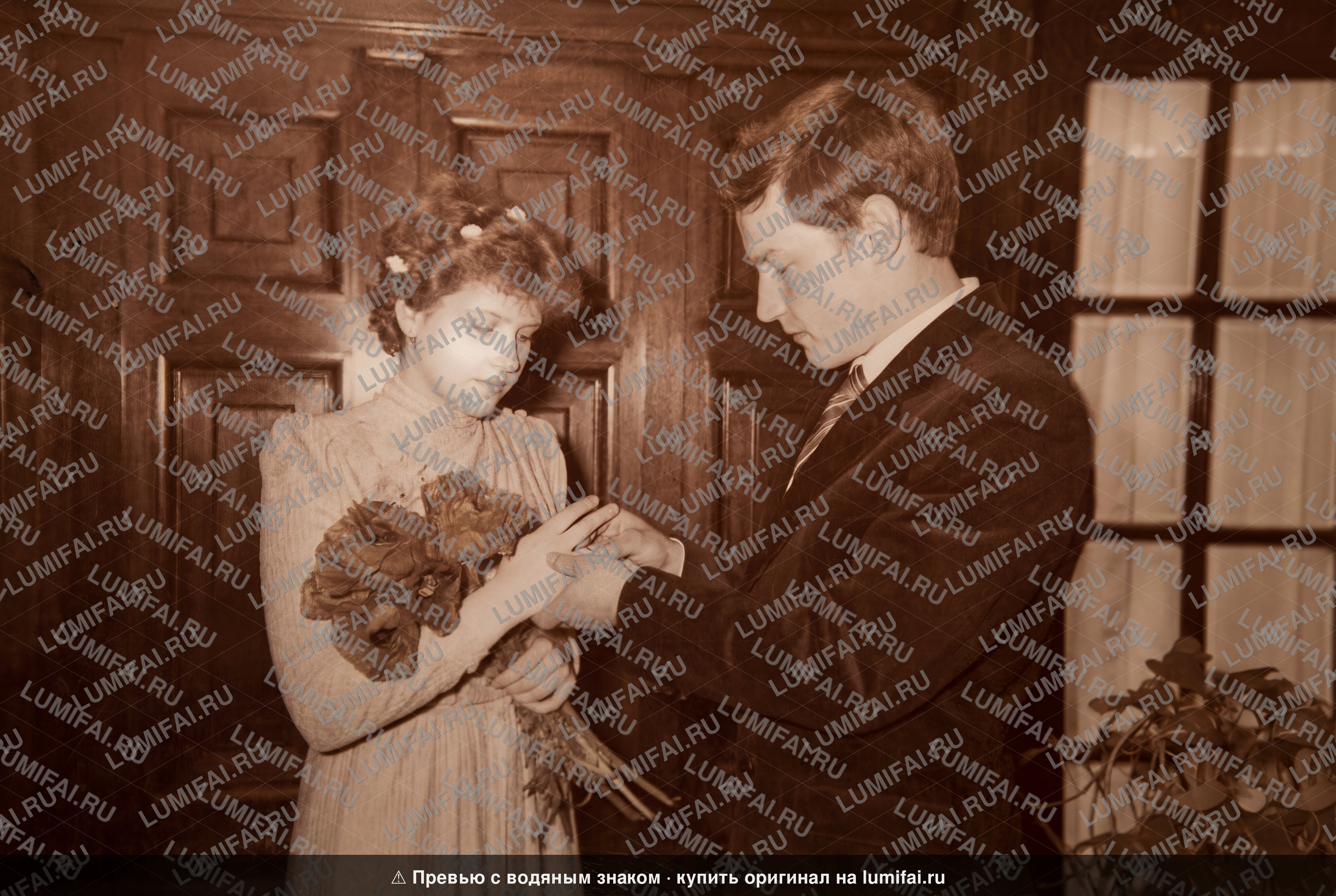Промт для восстановления свадебного фото в стиле семидесятых годов