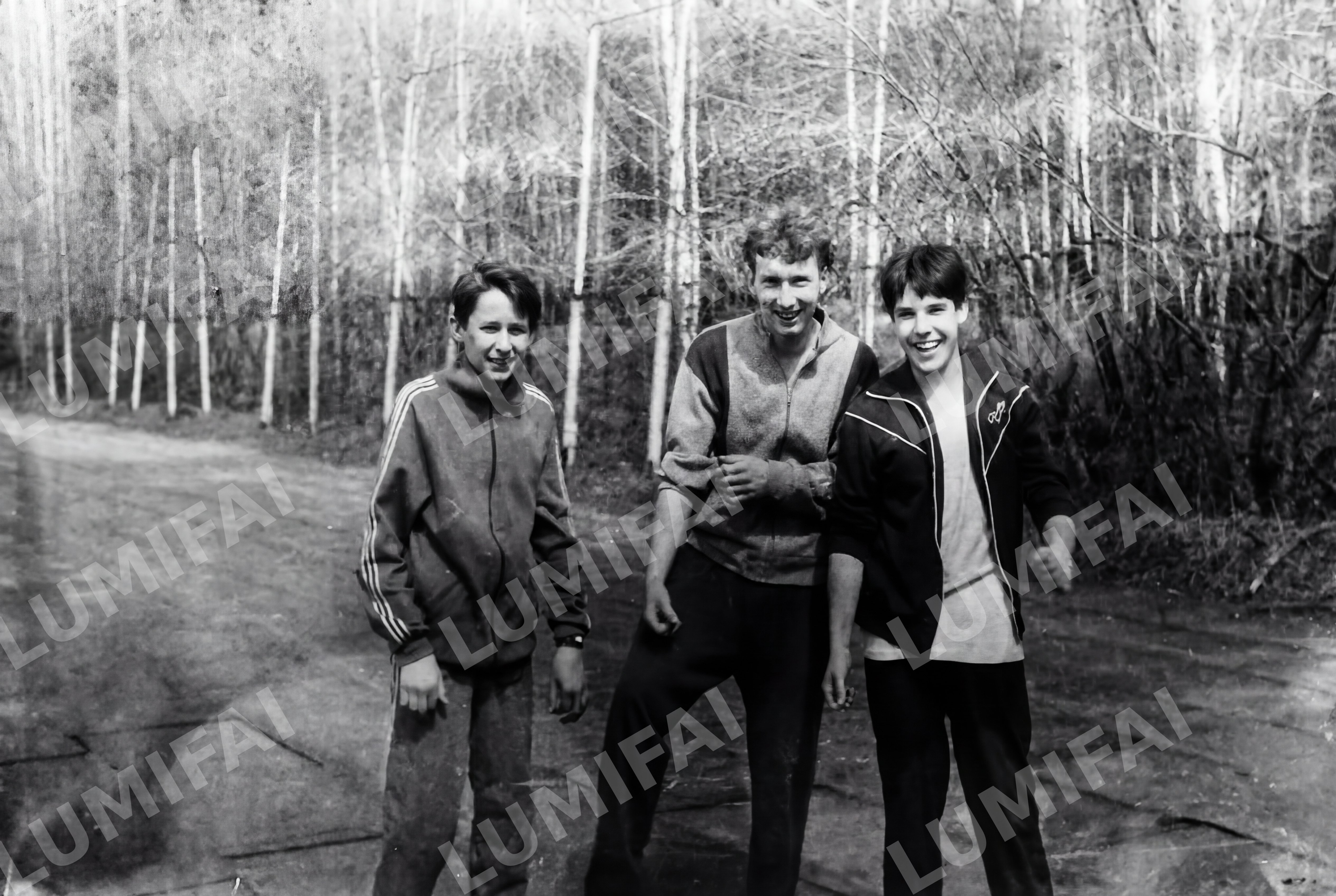```plaintext Gemini, restore and enhance this vintage photograph: - There are three young people standing outdoors on a paved path, surrounded by trees, possibly from the 1980s based on their clothing styles. - The person on the left is wearing a jacket with stripes on the sleeves, standing with hands in pockets. - The person in the middle is slightly taller, wearing a sweater and leaning with a hand on the shoulder of the person on the right, who wears an open zippered jacket over a t-shirt. - The background consists of bare trees, suggesting an autumn or early spring setting. RESTORE: - Remove scratches primarily visible across the middle and left areas of the photo. - Eliminate fading and discoloration affecting the entire image. - Fix tears and visible folds at the corners, particularly top left and bottom right. - Remove any dust spots. ENHANCE QUALITY: - Sharpen the image to define hair strands, fabric textures, skin pores, and eye details. - Increase tonal contrast and dynamic range to give depth and vibrancy. - Reduce film grain while maintaining the image’s natural texture. - Recover shadow and highlight details for better clarity and balance. - Enhance the facial features, making eyes, lips, and skin textures crisp and detailed. Maintain the black and white aesthetic of the image. ``` ABSOLUTE RULES — NEVER VIOLATE: - DO NOT add, invent, or hallucinate any part of the image that is not in the original (do not extend cropped areas, do not fill missing parts with invented content) - DO NOT change the framing or composition — if the photo is cropped, keep it cropped exactly the same way - DO NOT add any new damage, folds, creases, tears, dark borders, vignettes, or artifacts - DO NOT colorize — if the photo is black and white, the output must be black and white - DO NOT change, replace, or alter any person's face, body, or identity - DO NOT add or remove any person or object - DO NOT modernize clothing, hairstyles, or any visual elements - ONLY fix what is already damaged — remove existing scratches, tears, stains, fading - Keep the exact same framing, crop, and aspect ratio as the original