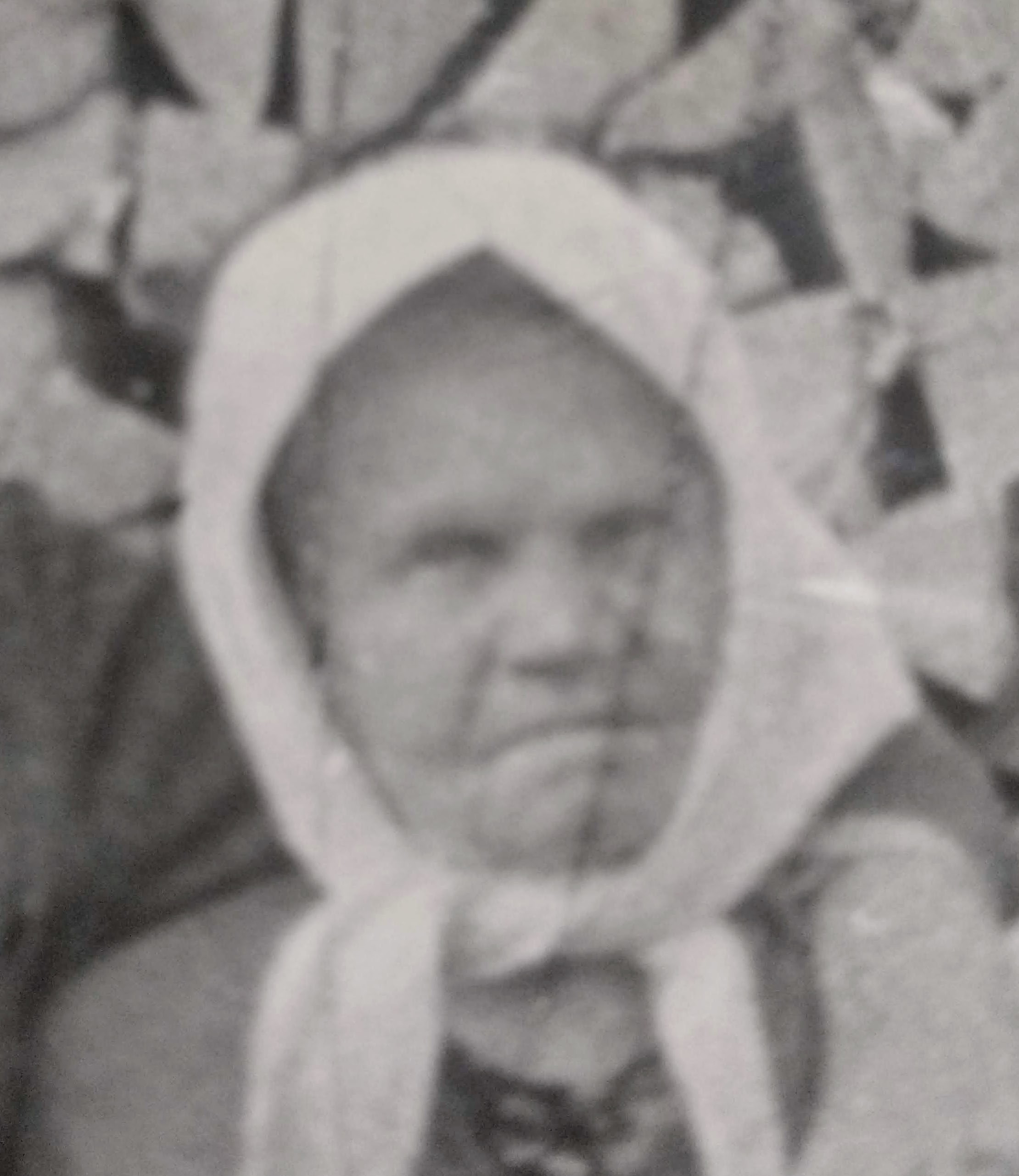 Professionally restore and high-definition enhance this vintage black-and-white photograph of an elderly woman. **Uniform Processing Requirements:** Apply equal, maximum sharpening and detail recovery to every single pixel of the frame. Do not prioritize the face over other elements. There must be zero background blur or artificial depth-of-field; the background must be as crisp and detailed as the subject. Reconstruct the entire image with a uniform, high-fidelity texture that maintains the original silver-halide film aesthetic while removing heavy blur and motion softness. **Subject and Setting:** The image features one elderly woman from a mid-20th-century rural or Eastern European era. She is wearing a light-colored headscarf (babushka) tied under her chin and a dark patterned garment beneath. She is positioned centrally against a backdrop of a stacked woodpile or rough-hewn stone wall. **Damage Restoration:** - Remove the prominent vertical scratch/crack running through the right side of her face, through her eye, cheek, and down into the scarf. - Eliminate the horizontal crease/light leak across the center-right of the image. - Clean all dust spots, white speckles, and chemical fading prevalent across the bottom and edges. - Repair the "smudged" appearance of the facial features to reveal clear, sharp eyes, skin texture, and mouth definition. **All-Encompassing Detail Enhancement:** - **Background:** Restore the woodpile/stonework with total clarity. Every crack in the wood, shadow between the logs, and texture of the bark must be rendered with needle-sharp precision. - **Clothing:** Render the weave and subtle pattern of the headscarf and the dark blouse with high tactile detail. The edges of the fabric should be clean and defined. - **Tonal Quality:** Significantly improve the dynamic range. Establish deep, rich blacks in the shadows of the woodpile and crisp, clean whites in the headscarf without blowing out highlights. Maintain the authentic grayscale monochromatic palette. - **Overall Quality:** Increase the resolution significantly. The final output must look like a perfectly preserved, professionally shot large-format film photograph where every element from corner to corner is in perfect focus and perfectly restored. ABSOLUTE RULES — NEVER VIOLATE: - DO NOT add, invent, or hallucinate any part of the image that is not in the original - DO NOT change the framing or composition — keep it exactly the same - DO NOT add any new damage, folds, creases, tears, dark borders, vignettes, or artifacts - DO NOT change, replace, or alter any person's face, body, or identity - DO NOT add or remove any person or object - DO NOT modernize clothing, hairstyles, or any visual elements - Keep the exact same framing, crop, and aspect ratio as the original - UNIFORM QUALITY: Process the ENTIRE image with equal attention — foreground flowers/textures, background elements, and edges must have the SAME sharpness and detail as faces. Do NOT leave any area blurry, simplified, or less detailed than another - SKIN COLOR: Eastern European skin = pale/medium, cool-neutral tone. NEVER red, orange, or overly warm. NEVER airbrushed or plastic - COLOR SATURATION: Keep overall saturation LOW TO MODERATE — muted analog film look, NOT vivid digital colors` - Preserve original tonal character: sepia stays sepia, black and white stays black and white - Apply uniform sharpness to the ENTIRE image — background and foreground equally. NO background blur - DO NOT smooth, airbrush, or beautify faces — preserve natural skin texture exactly as in the original