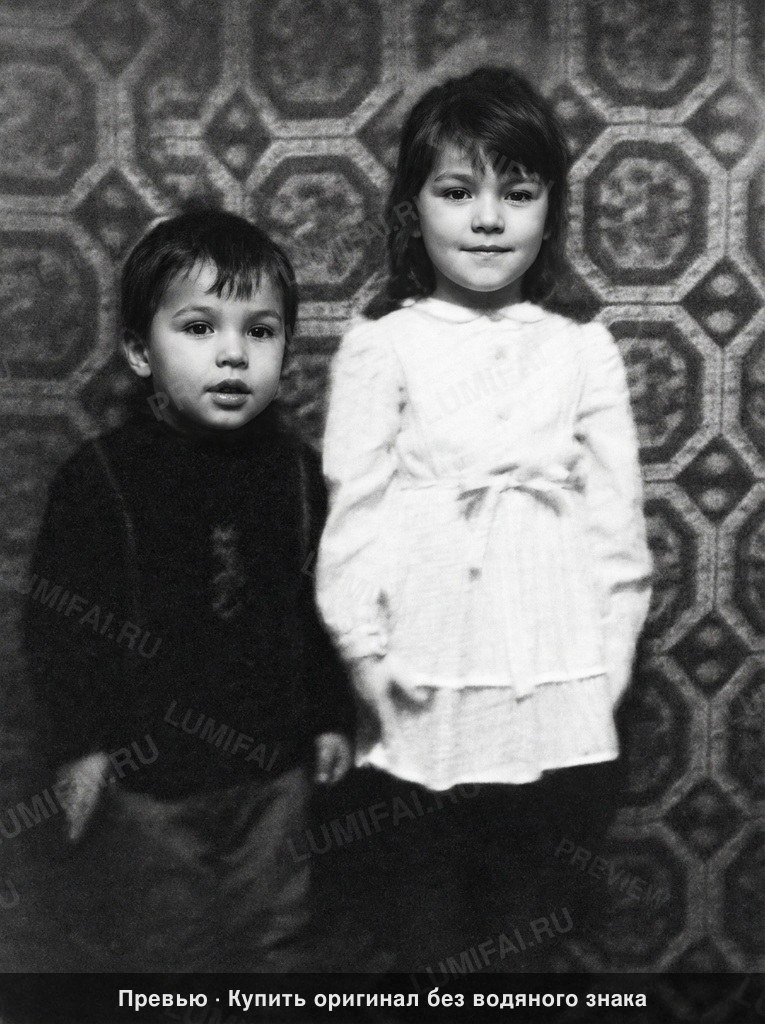 - **Bottom Third Restoration:** The lower portion of the image (legs/floor) is currently washed out. Restore the tonal density here to match the rest of the image, revealing the bottom of the girl's dress and the boy's stance.